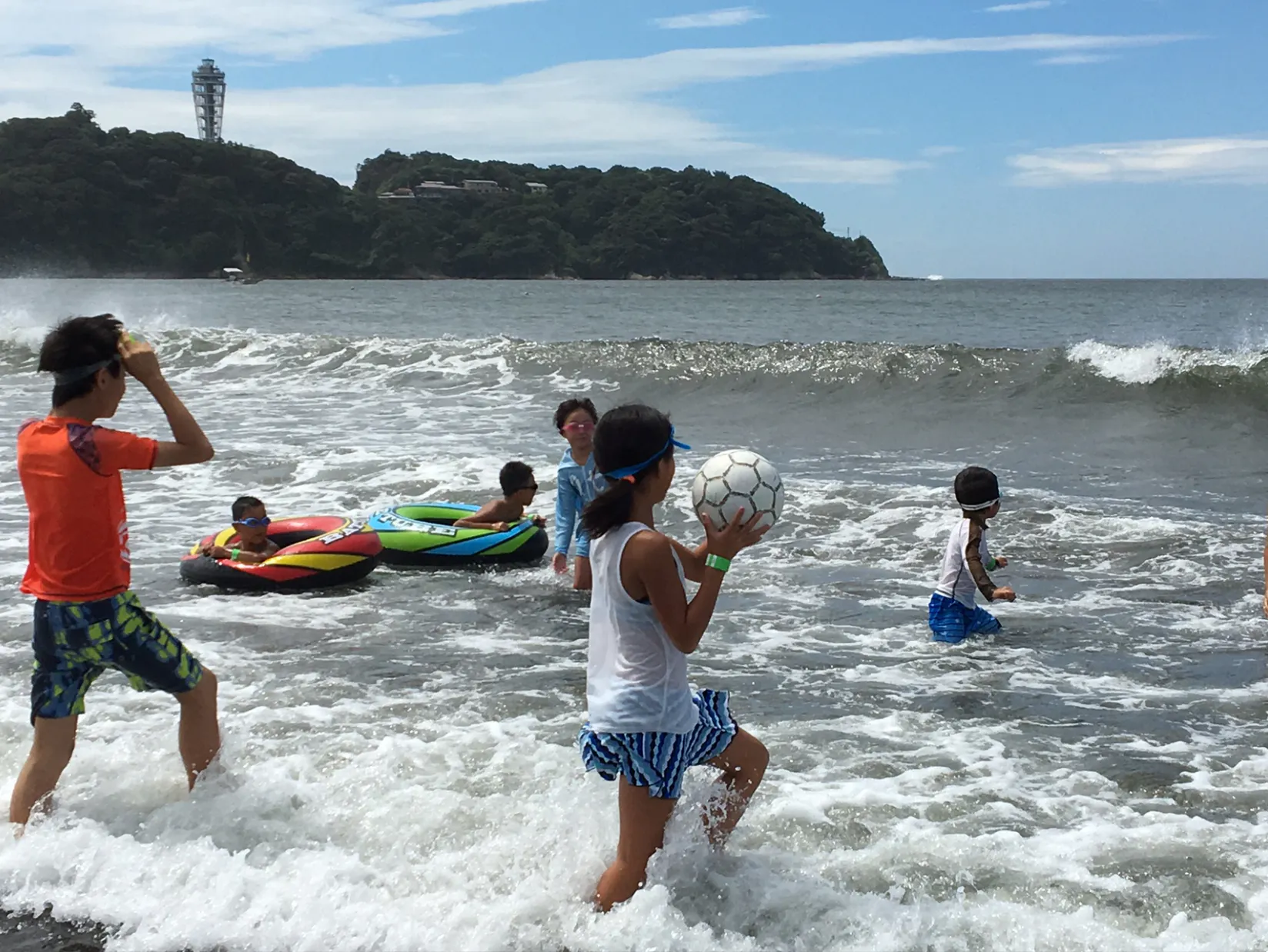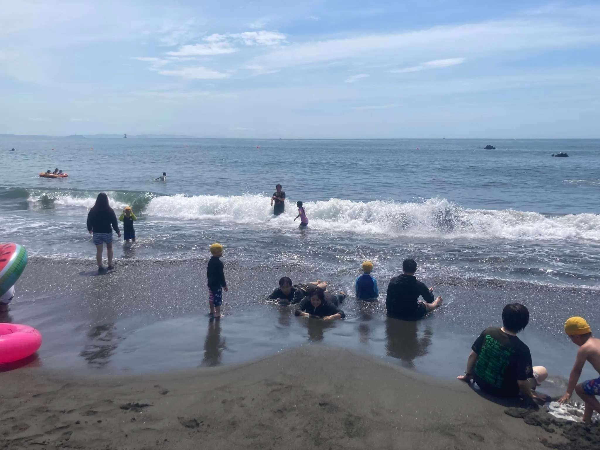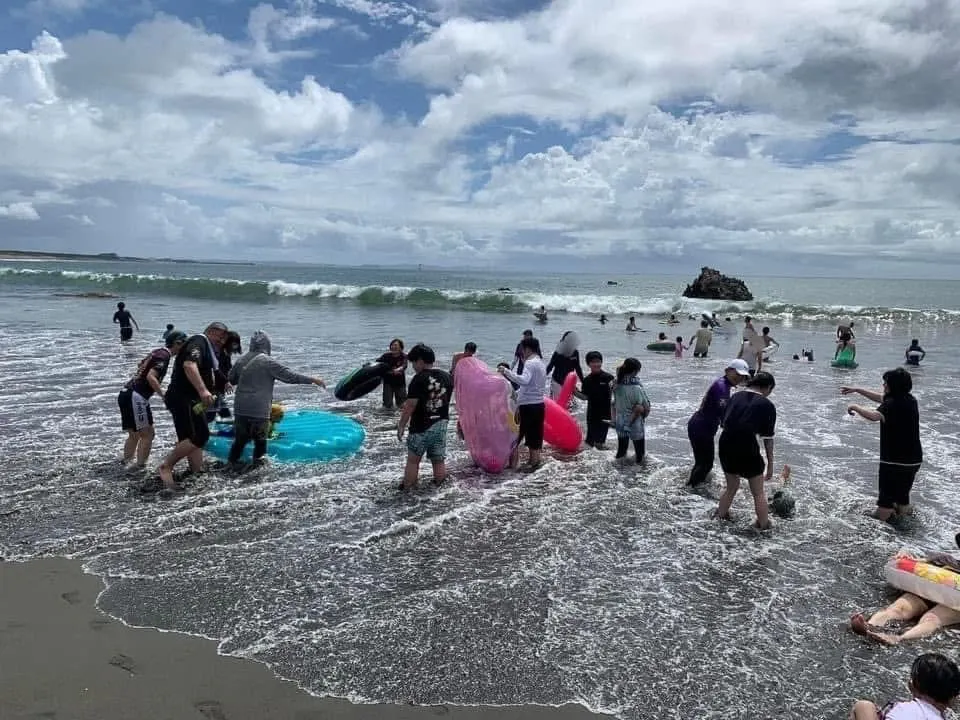 湘南の大磯の海でみんなで海水浴。昨年ご参加された方の中には高校生になって初めて海で泳いだ子どももお二人いらっしゃいました。