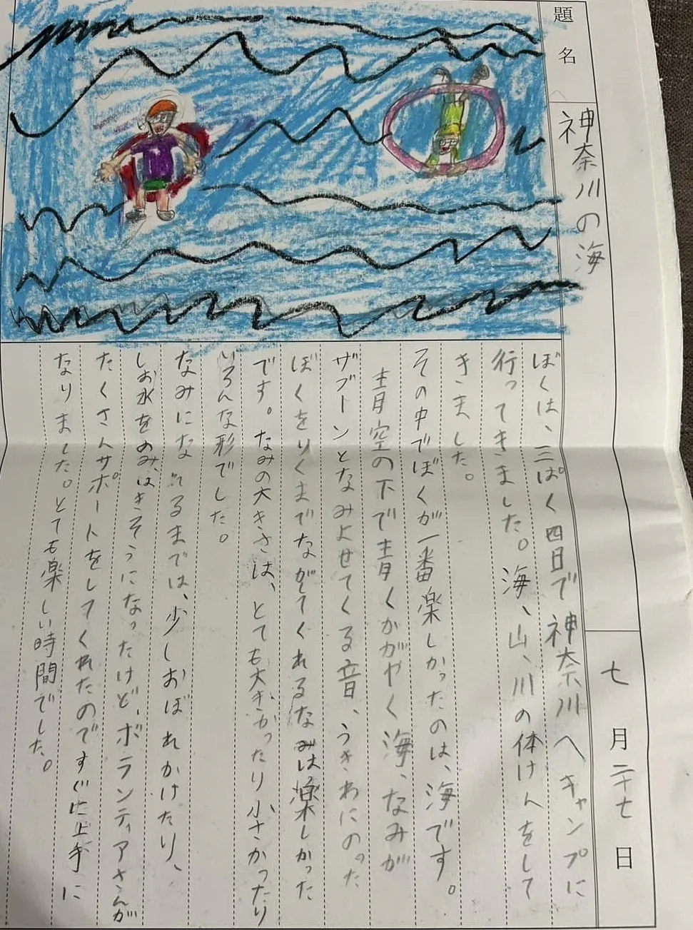 ※写真は子どもが夏休みの宿題で学校へ提出された絵日記です