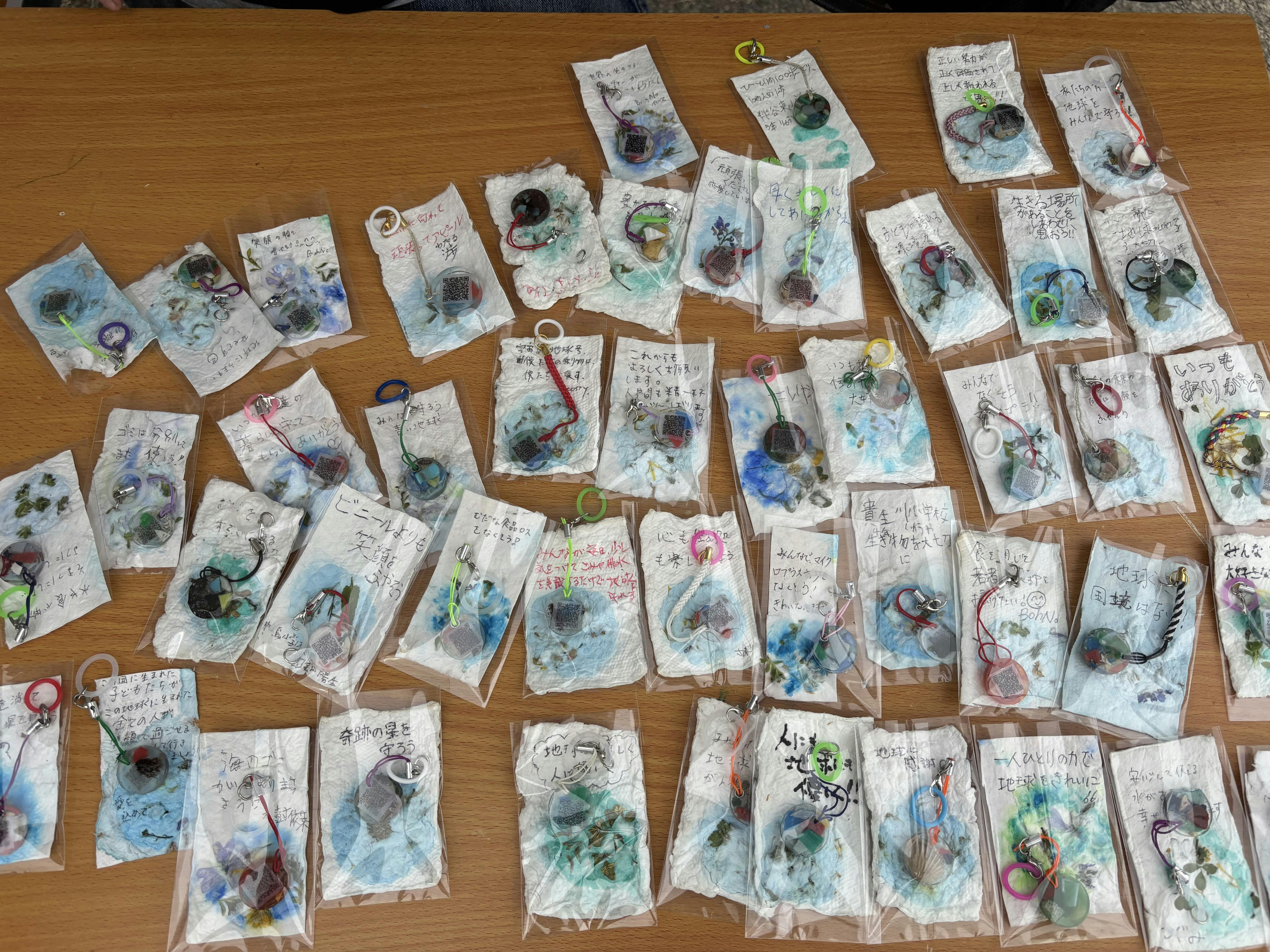 また、万博を直前に控えて、3000人を上回る来館者に対して、申請して制作したノベルティ50個では、僕たちの発表を見に来て下さった方に満足頂けないのでは?っと話から、急遽、来場者参加型アート作品を追加展示する企画話が持ち上がりました。