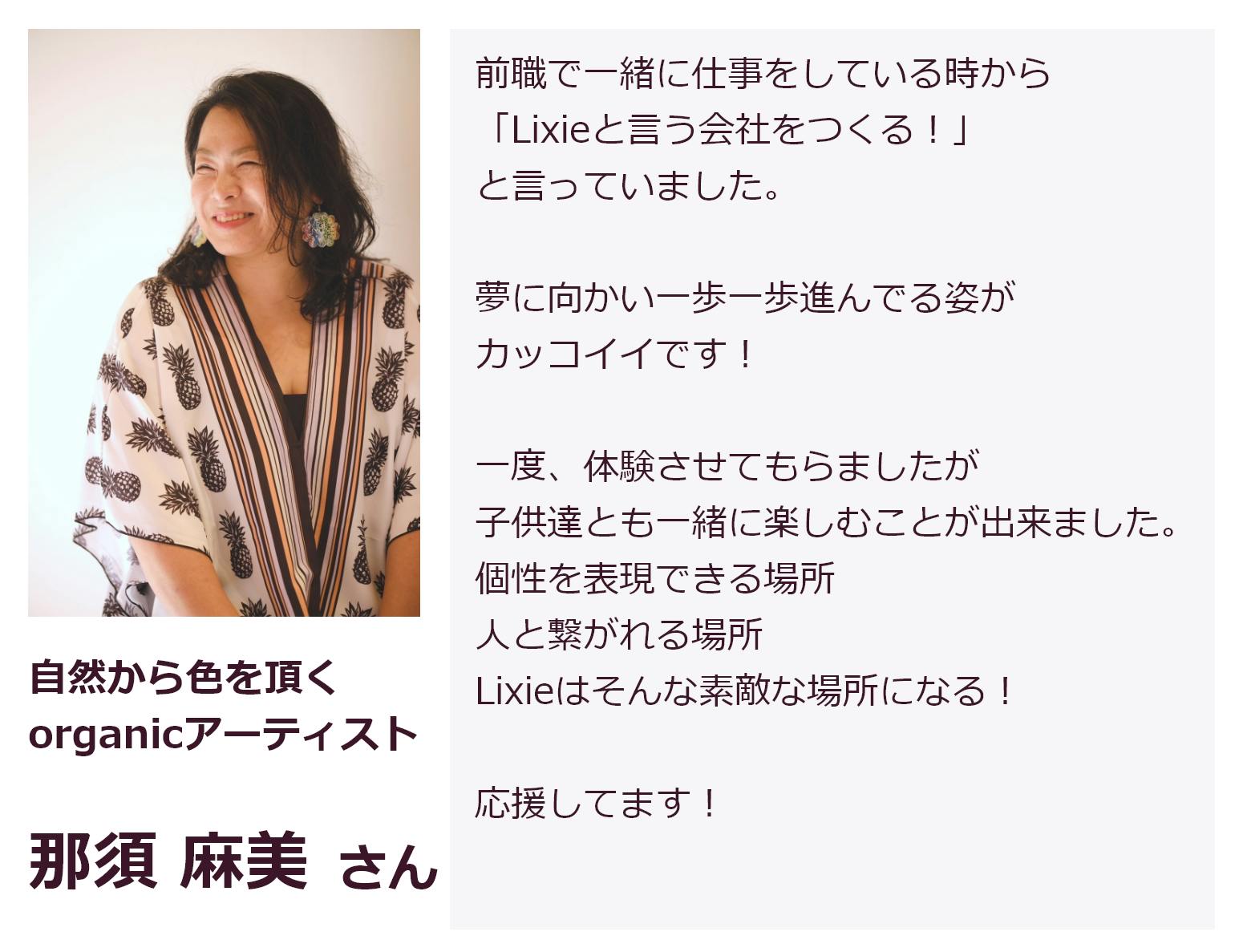 改めまして、まりあです。「Lixie(リクシー)」を立ち上げ、事業を広げるべく仲間達と日々奮闘しています。