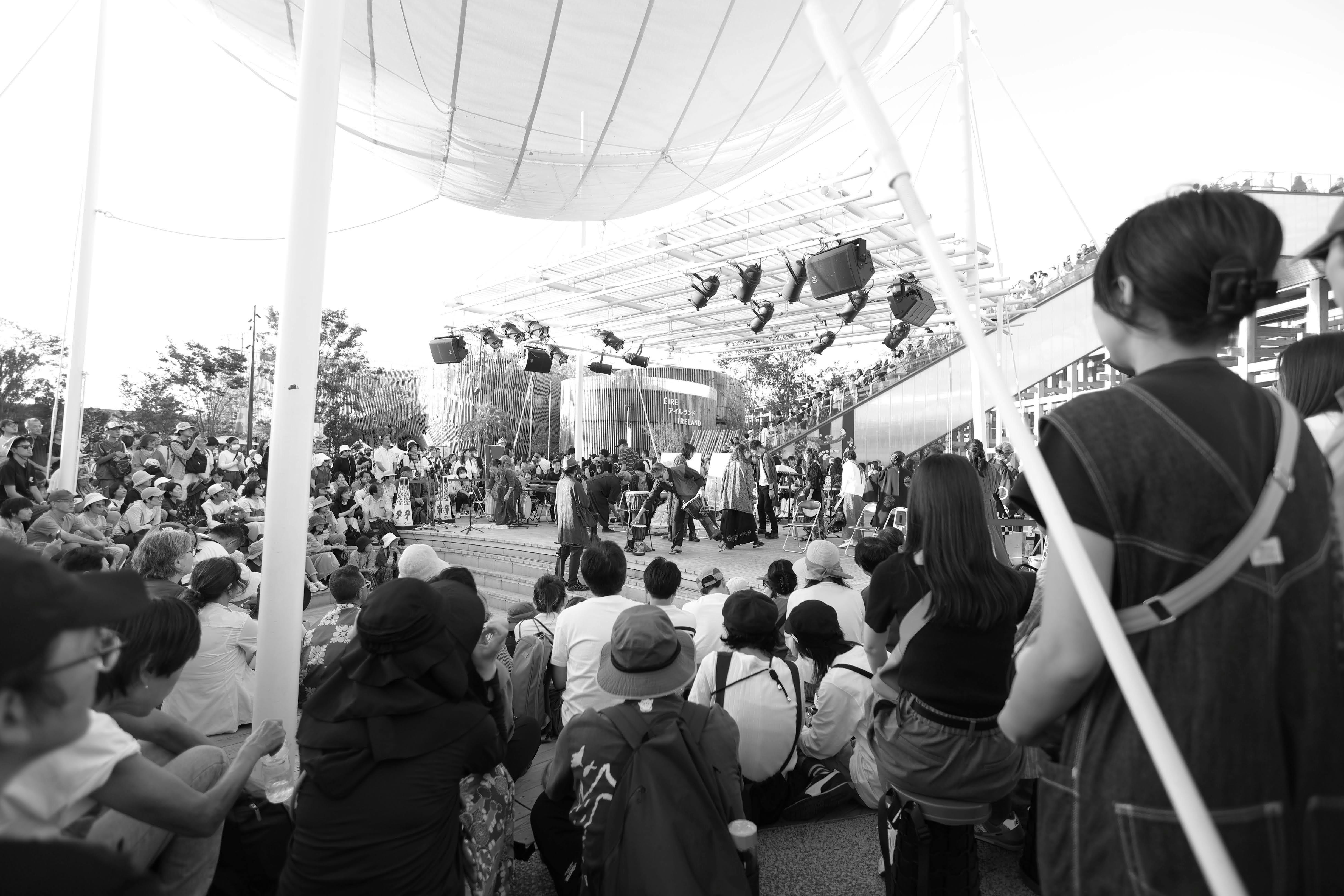 これが前回ご報告しました、周囲一帯がお客様に囲まれていた状況です。ステージ前はくぼ地形になっているので密集度はホントにすごかったです。これほど近い距離感でお客さんの温度を感じながら、これほど多くの方々に聴いてもらえて本当に幸せなことでした。