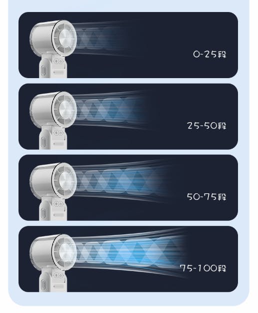 もう一度短く押すと扇風機の回転速度をアップし、一度押すたびに一段階上がります。