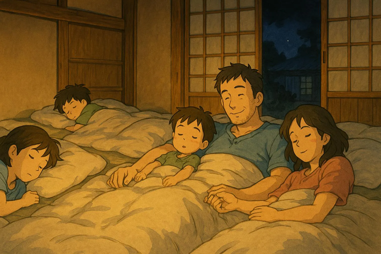・各部屋での就寝は家族ごとに分かれます