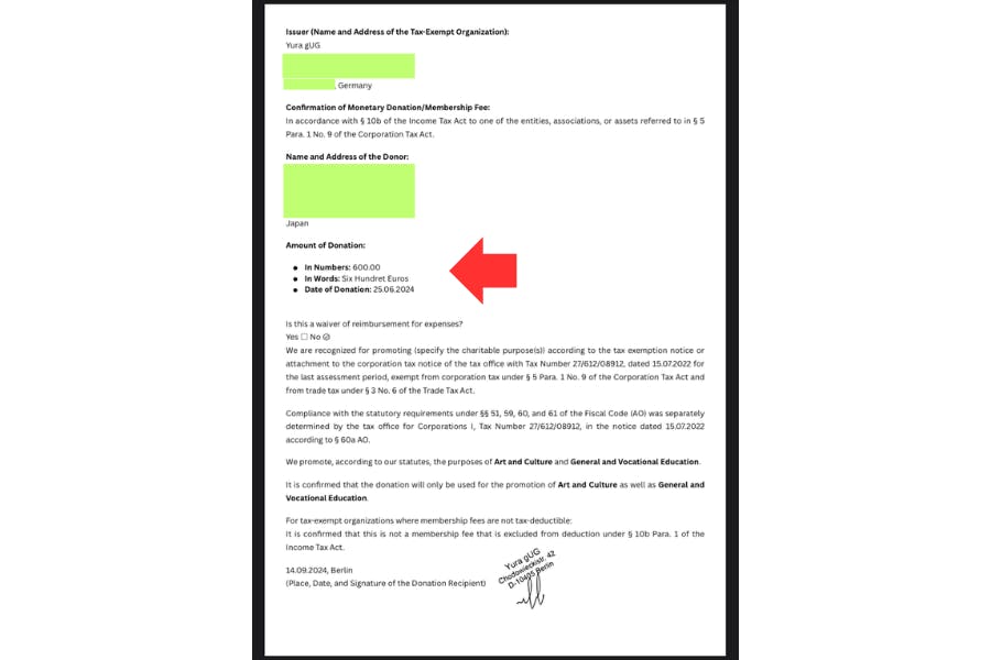 文学フリマ東京38の売上600ユーロ(10,4160円)をYuraart.orgへ寄付