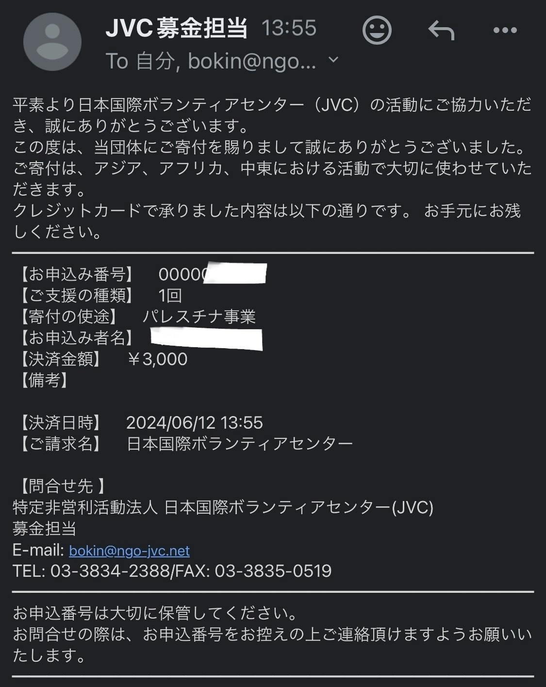 そして残りの4,000円は日本国際ボランティアセンターに寄付いたしました。