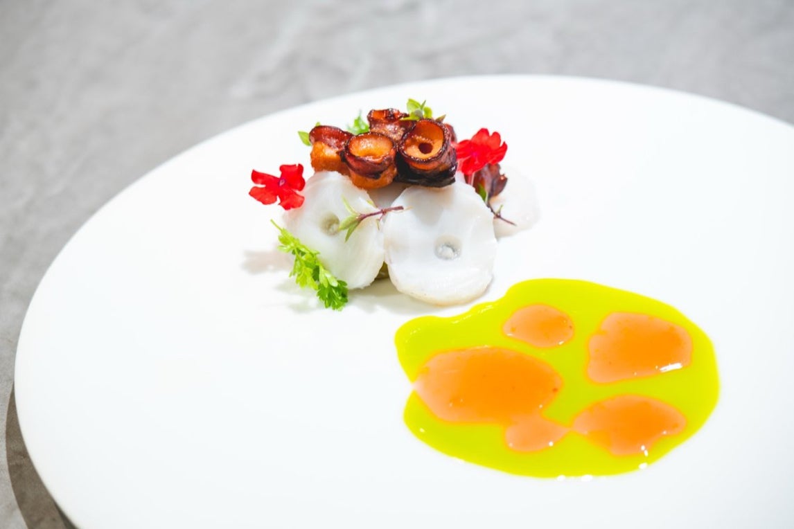 フランス語で「豊かな海」を意味するこの言葉には、金沢の海の幸をフランス料理の技法で新たな価値へと昇華させたいという想いが込められています。