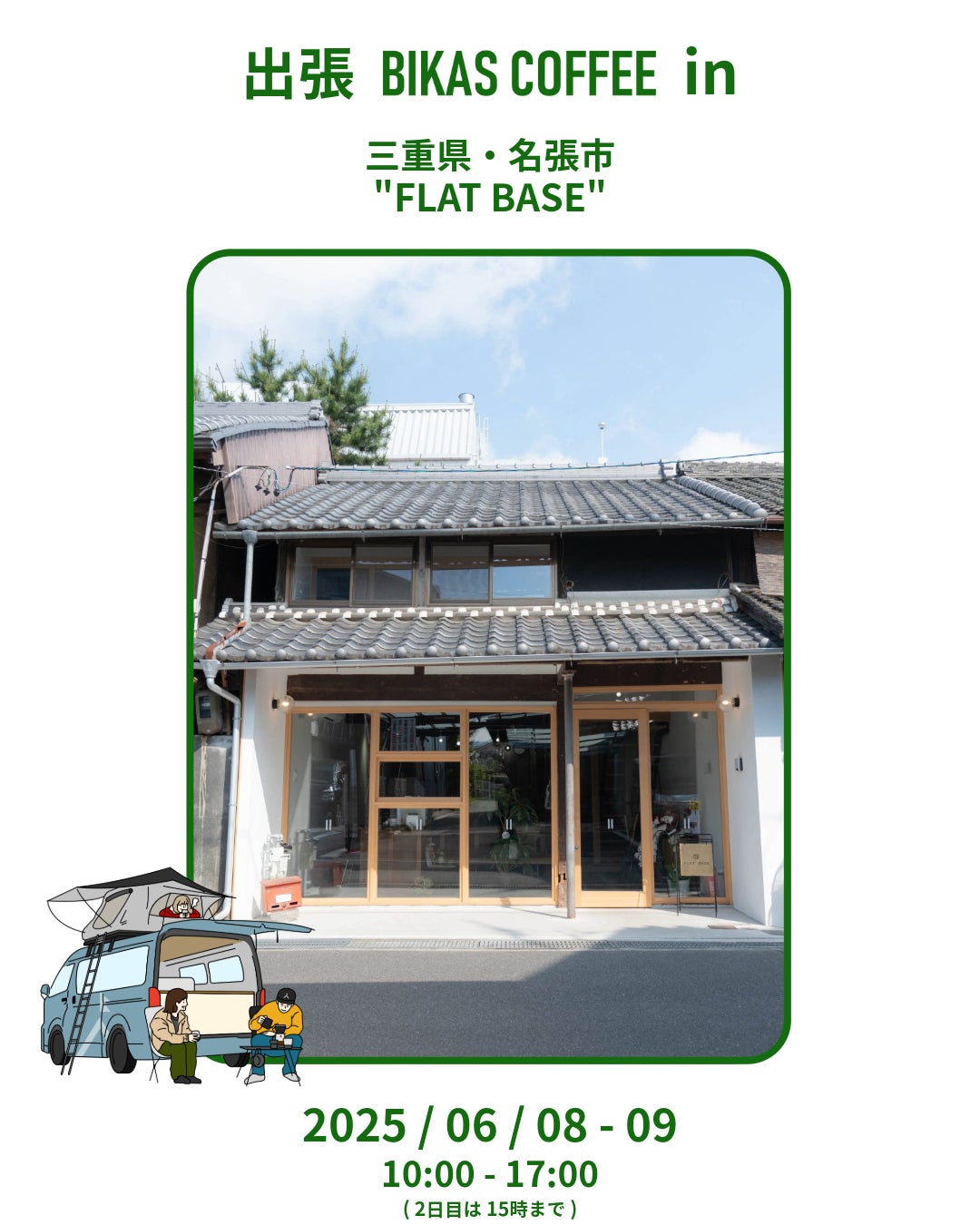 コーヒーの木のオーナーが住む全国各地のマチへ、コーヒーを届けに行きます!コーヒー植樹プロジェクトの開催期間中、BIKAS COFFEEでは、これまで木のオーナーになってくれた方やいつも応援してくださる皆さまが住むマチへ出向き、直接コーヒーをお届けします。【出店情報】\6/8(日)は三重・名張出店!/初!念願!三重・名張のFLAT BASEさんにて出店させていただきます!FLAT BASEさんの最強サポートのおかげさまで、一緒に出店してくださる方々が続々と集結!皆様と共にBIKAS GREEN marché2025@名張を開催します!当日はコーヒーのみならず、アロマなどの雑貨、お弁当やキンパやパン、米粉のお菓子や名張のお野菜を使ったスイーツなど、名張の魅力とパワーがギュギュッと詰まった1日になりそうです!そして売上の一部はコーヒー植樹プロジェクトに還元させていただきます。みんなでコーヒーを飲んで「FLAT BASEの木」を植えましょう!コーヒーの木は3年で実をつけます。3年後、FLAT BASEの木から採れたコーヒー豆でまた集結しよう、そんな話を皆さんとしています。三重・名張は、私たちの大切な常連さんが「生まれ育ったマチ」、「移住したマチ」ということでお話を伺っていたので、念願の名張出店です。当日名張の皆様にお会いできることを楽しみにしています!!【概要】日時:6月8日(日) 10:00-17:009日(月) 10:00-15:00※マルシェは6/8のみ。6/9はBIKAS COFFEEのみの出店となります。場所:FLAT BASE〒518-0725 三重県名張市元町433-8