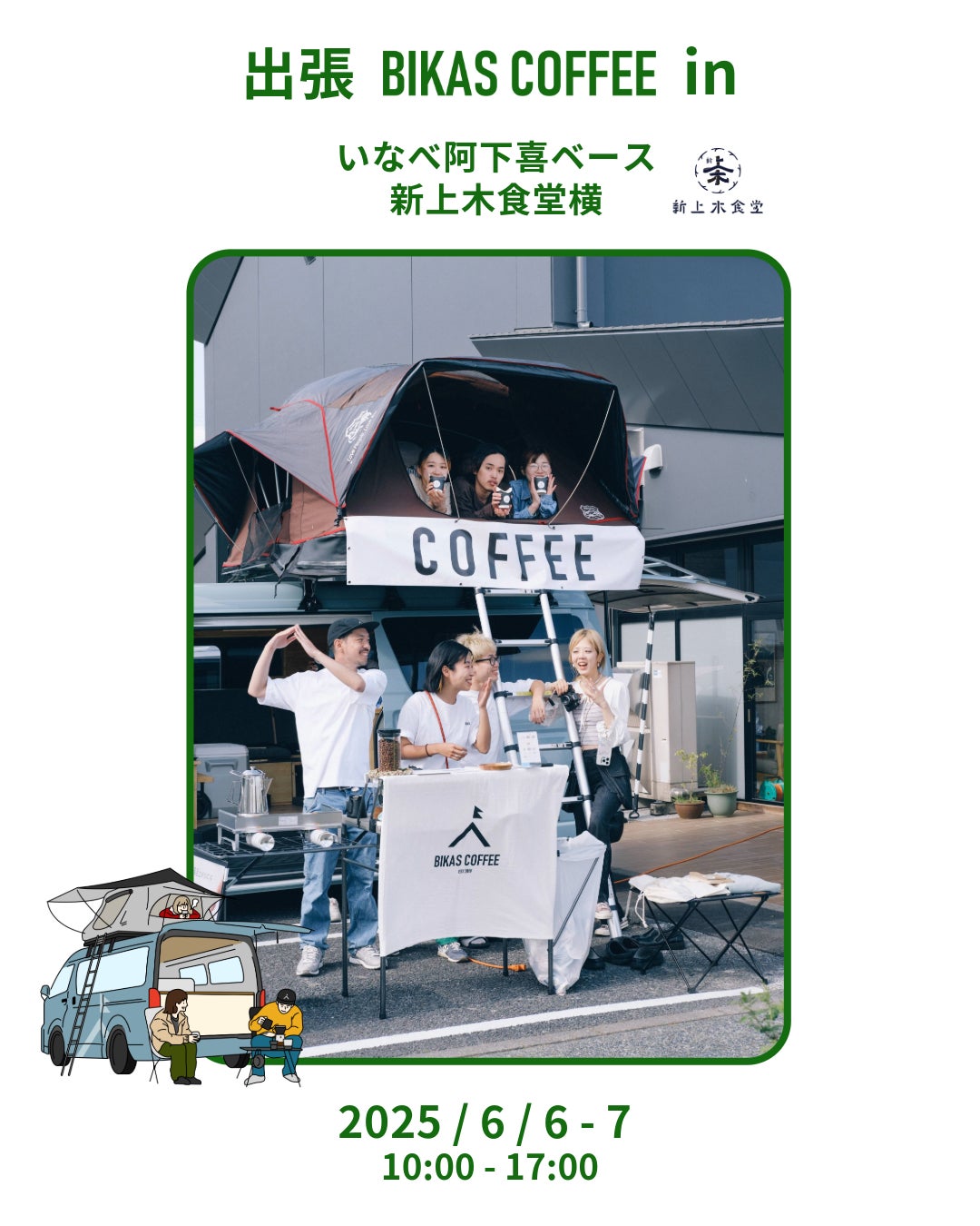 コーヒーの木のオーナーが住む全国各地のマチへ、コーヒーを届けに行きます!コーヒー植樹プロジェクトの開催期間中、BIKAS COFFEEでは、これまで木のオーナーになってくれた方やいつも応援してくださる皆さまが住むマチへ出向き、直接コーヒーをお届けします。【出店情報】一年ぶり2度目の開催!三重県いなべ市の新上木食堂さんの横でコーヒーをキャンピングカーで出店させていただくことになりました!昨年はドキドキの初出店。三重県いなべの皆様と、新上木食堂や阿下喜温泉を目掛けてくる県内外の方々にコーヒーを楽しんでいただき、その後も三重からオンラインでコーヒーを購入してくださる方がいるなど、私たちにとっても思い出深い場所になりました。来る2025年6月も、新上木食堂さん横で皆さんにお会いできることを楽しみにしています!!そして今回は、我らが信頼する新上木食堂あべちゃんのご紹介でお繋ぎいただいた皆様と盛り上げる、「あべちゃんありがとうおめでとう祭り」でもあります!6/6(金)は、あべちゃんがカレー屋さんを始めるにあたってサポートしてくれた恩人ガチャカレーさんがカレーで、あべちゃんとよく出店し苦楽を共にしたおひなさんがお菓子で、食堂横を盛り上げてくれます!6/7(土)は、あべちゃんが大好きで追いかけているテイクアウトのお菓子屋un weekendさんがお菓子で、食堂横を盛り上げてくれるのです!三重県、愛知県周辺にお住まいの皆様、ぜひ遊びにいらしてください!【概要】日時:6月6日(金)10:00-17:007日(土)10:00-17:00場所:いなべ阿下喜ベース駐車場内(三重県いなべ市北勢町阿下喜788)