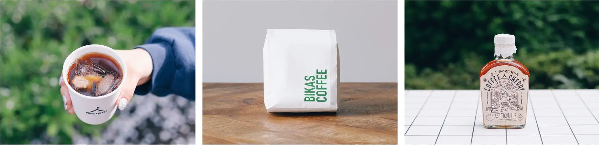 今回、阪急うめだ本店で開催するマルシェでは、コーヒー豆をはじめ、コーヒー器具を持っていない方にもBIKAS COFFEEをお楽しみいただけるダンク式コーヒーをご用意します。また、産地ネパール・ハルパン村とダリンボット村の等高線をモチーフにしたアパレルグッズや、昨年末に販売を開始してから大好評の「コーヒーチェリーシロップ」を限定販売します。当日はコーヒー植樹のオーナー権お申し込みも受け付けています。本プロジェクトに関するご質問にBIKAS COFFEEスタッフが直接お答えします。