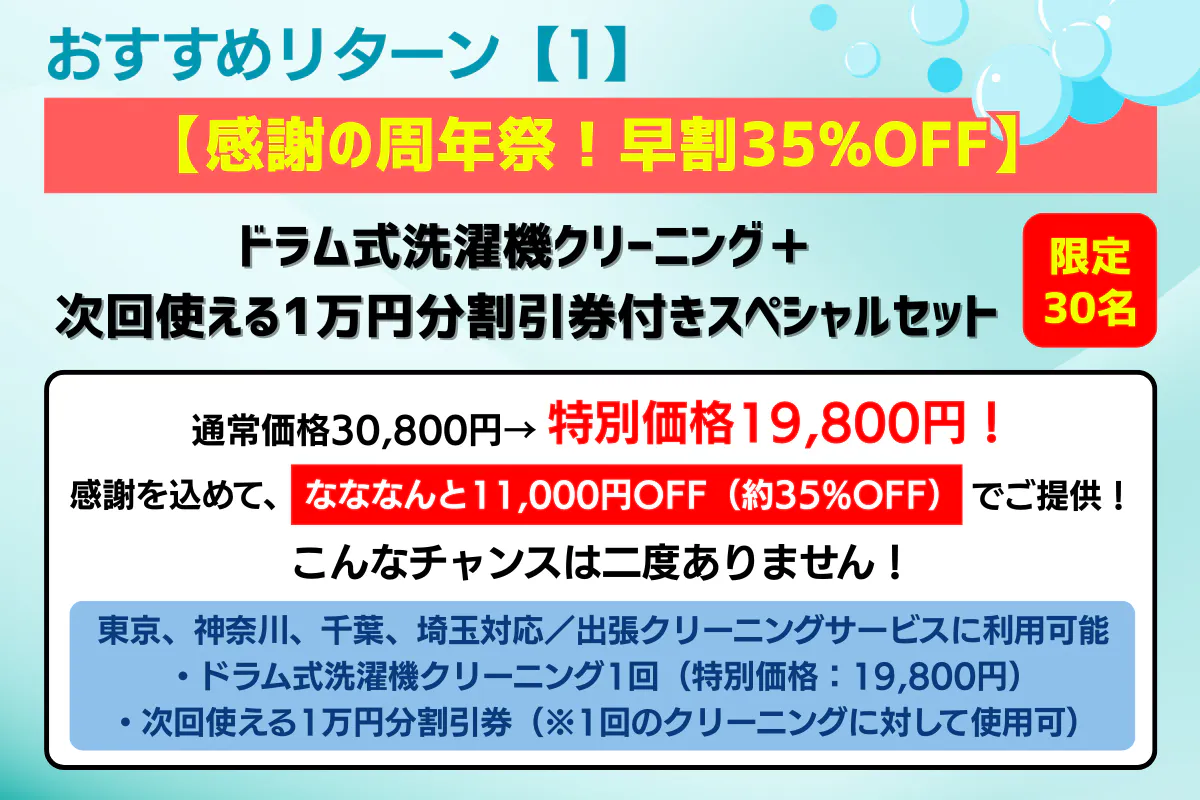 ドラム式洗濯機に特化したクリーニングサービスを提供しています。
