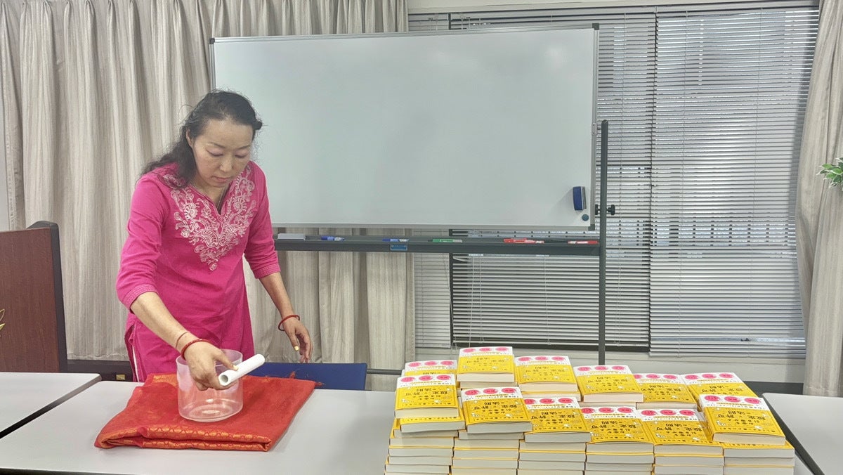 支援者の方にお送りする本に、クリスタルボウルの音を浴びせて