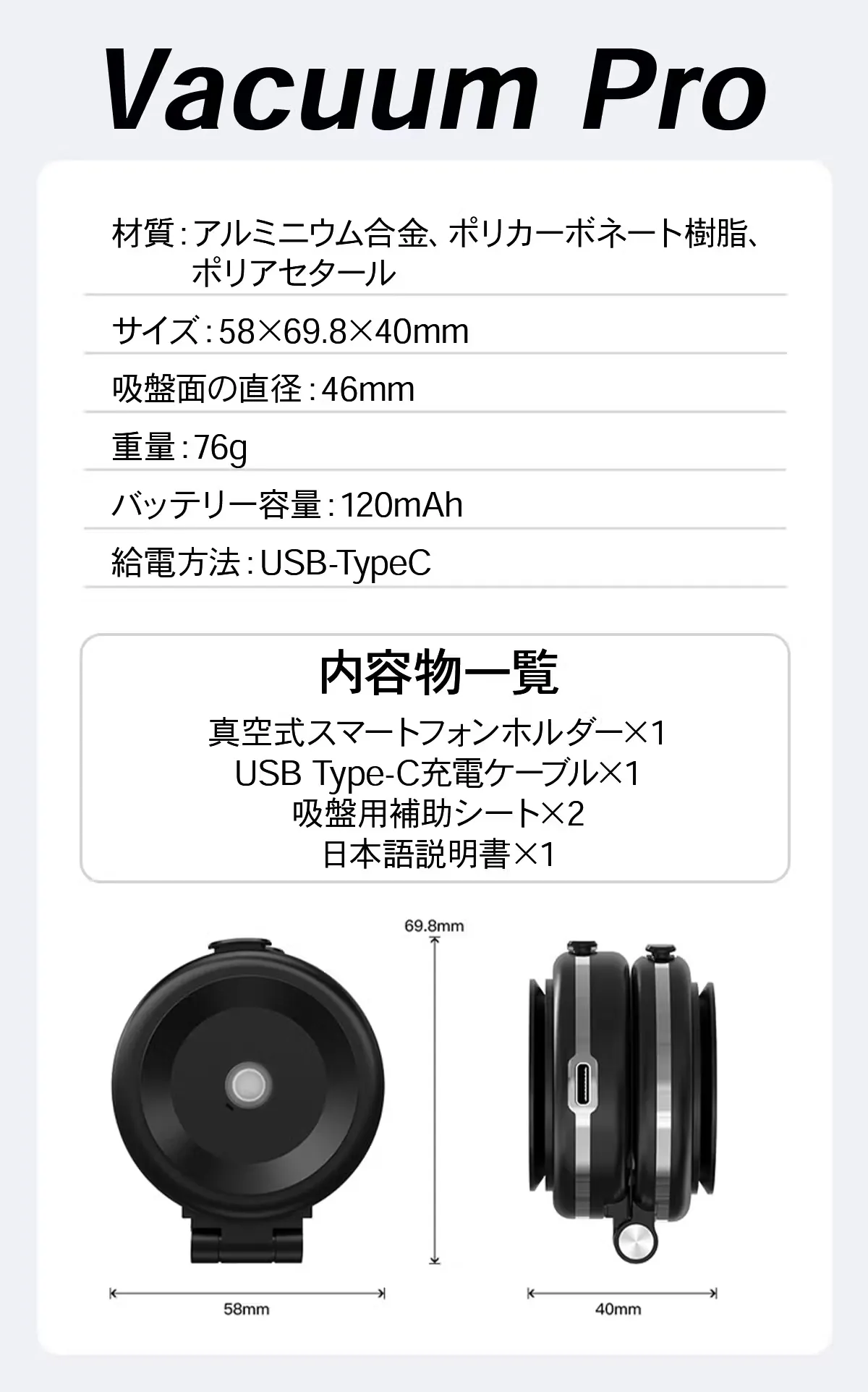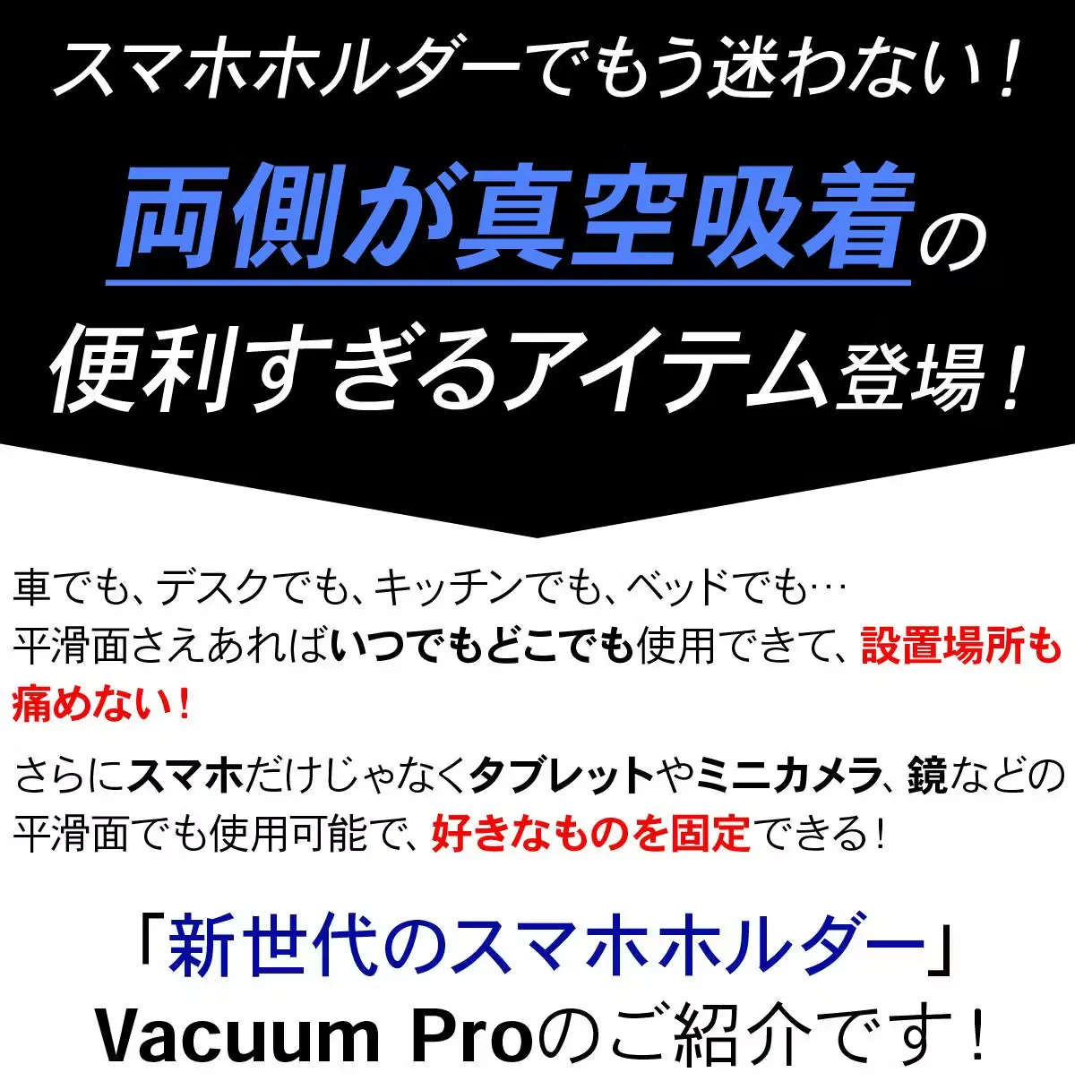 そんなお悩みを解決するために【両面真空吸着式】のスマホホルダー「Vacuum Pro」を紹介させていただきます。