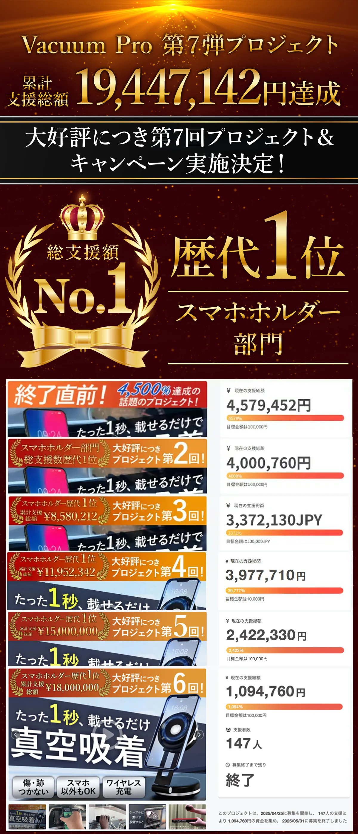 2026/04/03 21:00\Vacuum Magnet紹介/こんばんは、BRIGHT DIYです。今回は皆さまに「真空吸着で強力固定、ワイヤレス充電対応、コンパクトで持ち運びも便利、スマホやタブレットの使い勝手が向上する」プロジェクトを紹介させて頂きます。プレビューページをお気に入り登録して公開をお待ちください! 固定したままワイヤレス充電OK!真空&磁気吸着式折りたたみスマホホルダー最大割引は41%OFF!高割引率は数量限定です!ここだけの限定割引を見逃さないよう、ぜひお気に入り登録して公開をお待ちください!お気に入り登録することで公開されたらメールでお知らせいたします!プレビューページはこちら >>> https://camp-fire.jp/projects/911828/view※早期リターンは在庫がなくなり次第終了となります。大人気で終了したVacuumシリーズ最新作が登場!プレゼントキャンペーン付きプロジェクトを実施します!外れにくいのに、取り外すときは超簡単ワンボタン!プレビューページはこちら >>> https://camp-fire.jp/projects/911828/view今後とも、何卒よろしくお願い致します。BRIGHTチーム もっと見る