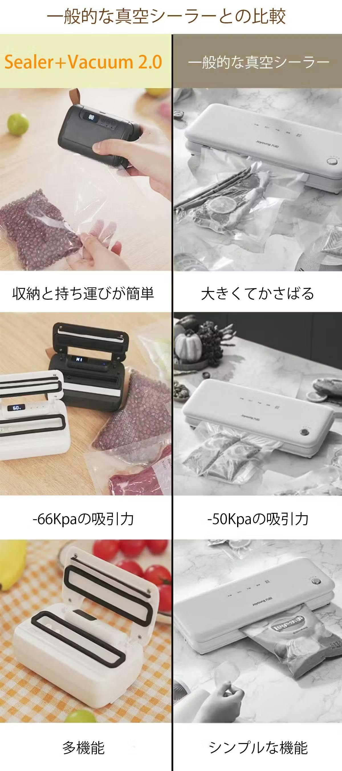 Sealer+Vacuum 2.0 は前モデルからさらにパワーアップして-66Kpaの強力な吸引力を搭載!