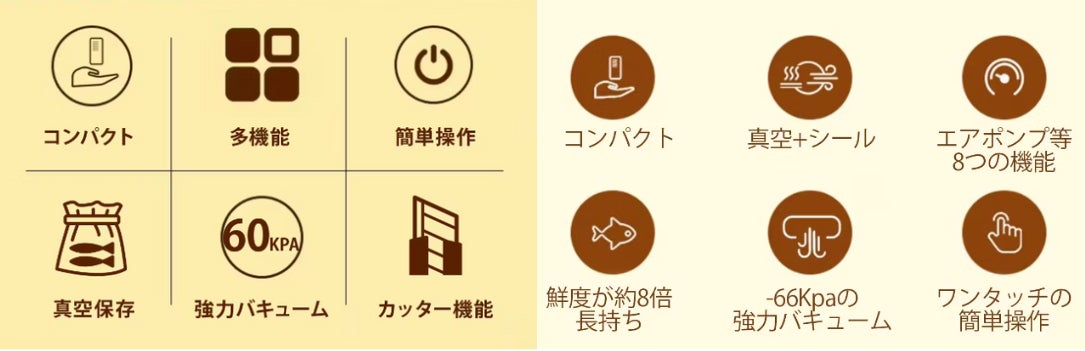 簡単操作両機種とも、シンプルな操作性を提供しており、簡単なインターフェースで数回の操作だけで真空パックとシールを完了することができます。