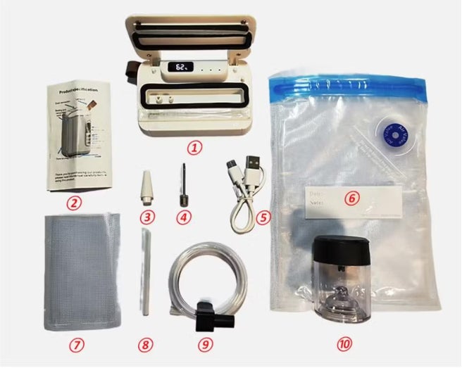 Sumhen Sealer Vacuum 2.0のセット内容も非常に豊富で、多用途に使用できるアクセサリが揃っています。以下がパッケージに含まれているものです。