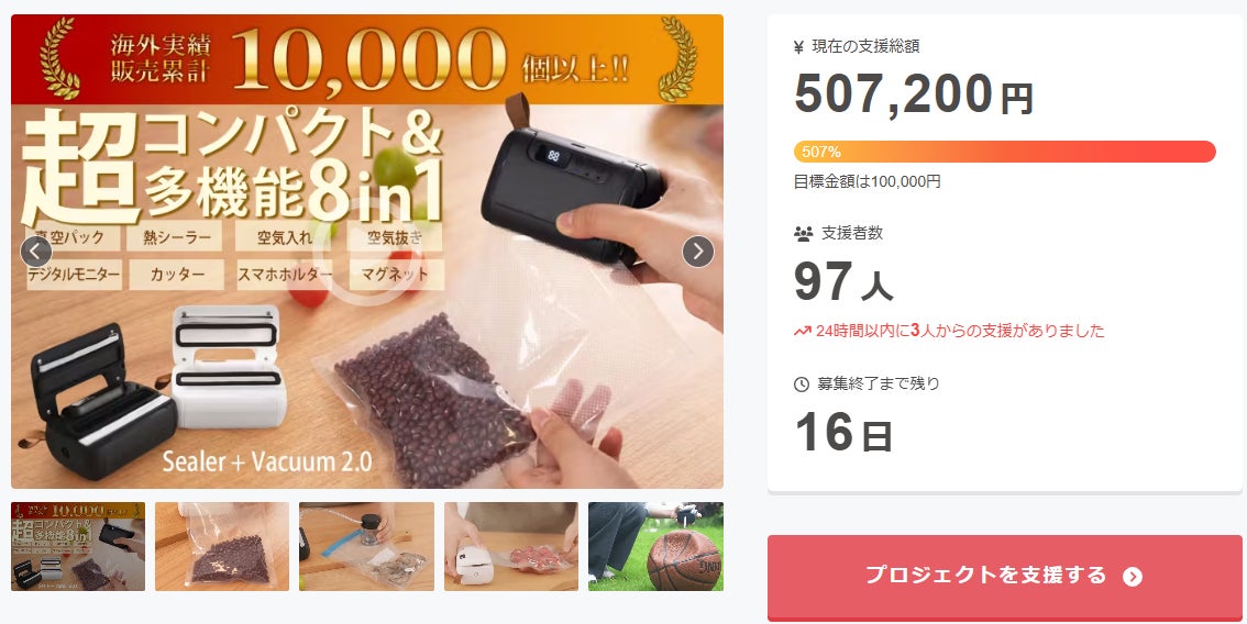 皆様、こんばんは!Bright DIYチームです。忙しい日々を送る私たちにとって、食品保存は毎日の課題ですよね。食品を長持ちさせたい、でも時間も手間もかけたくない、そんなあなたに朗報です!今回は、真空パック界の革命児Sumhen Sealer Vacuum 2.0をご紹介します。この製品は、音の静かさからデジタルディスプレイ、さらには多機能なデザインまで、まさに「すべてを手に入れた」一台。では、その秘密に迫りましょう!真空パック機と言えば、あの「ゴォー」という大きな音が気になる方も多いはず。しかし、Sumhen Sealer Vacuum 2.0はその問題を解決!静音ポンプを採用しているため、使用中の音が非常に控えめ。これなら、夜中や早朝でも周囲を気にせずに使うことができます。家庭だけでなく、シェアハウスやアパートに住んでいる方にもぴったりですね。Sealer Vacuum 2.0は、サイズ100x60x50mm、重さはわずか217gという非常にコンパクトなデザインです。これは、一般的な真空パック機の約1/10のサイズに相当します。そのため、家庭での収納も容易で、スペースを取らずにすっきりと収めることができます。また、軽量なので、キャンプや旅行などの際にも楽に持ち運ぶことができ、どこでも手軽に使用できます。このような機動性が、Sealer Vacuum 2.0の大きな魅力となっています。キッチンで使う機械は、どこに置こうか困ることがよくありますよね。しかし、Sumhen Sealer Vacuum 2.0はスマホホルダーを搭載し、レシピを見ながら料理ができます。さらに、裏面に強力なマグネットがついているため、冷蔵庫やメタルラックなどに簡単にくっつけて収納可能です。これなら、収納スペースに困ることもありません。Sumhen Sealer Vacuum 2.0は、真空パックの常識を変えるアイテム。静音設計、デジタルディスプレイ、カッターやスマホホルダー、マグネット収納など、機能が充実しているのに、操作は非常にシンプル。これ一台で食品保存が圧倒的にラクになります。ぜひ、あなたのキッチンにもこの革新的な真空シーラーを加えてみてください!以上、Bright DIYチームでした!ご興味のある方、ぜひ支援お願い致します。https://camp-fire.jp/projects/view/848310Brightチームは当プロジェクトをより多くの方へ知って頂きたいと考えております。宜しければ、FacebookやTwitter等のSNSでのシェア・拡散をお願い致します。#sealervacuum #sumhen #brightdiyどうぞよろしくお願い致します。Brightチーム