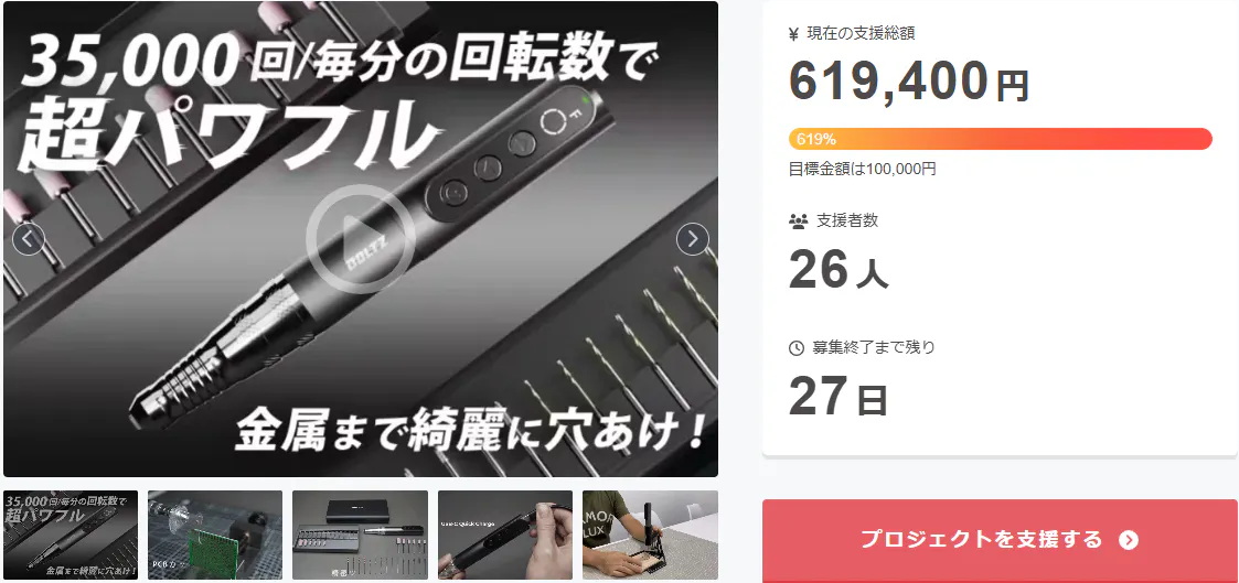 この度は「累計出荷数5千個◎BOLTZコードレスミニルーターで木材から金属まで加工も自由!」に支援 頂き誠にありがとうございます!