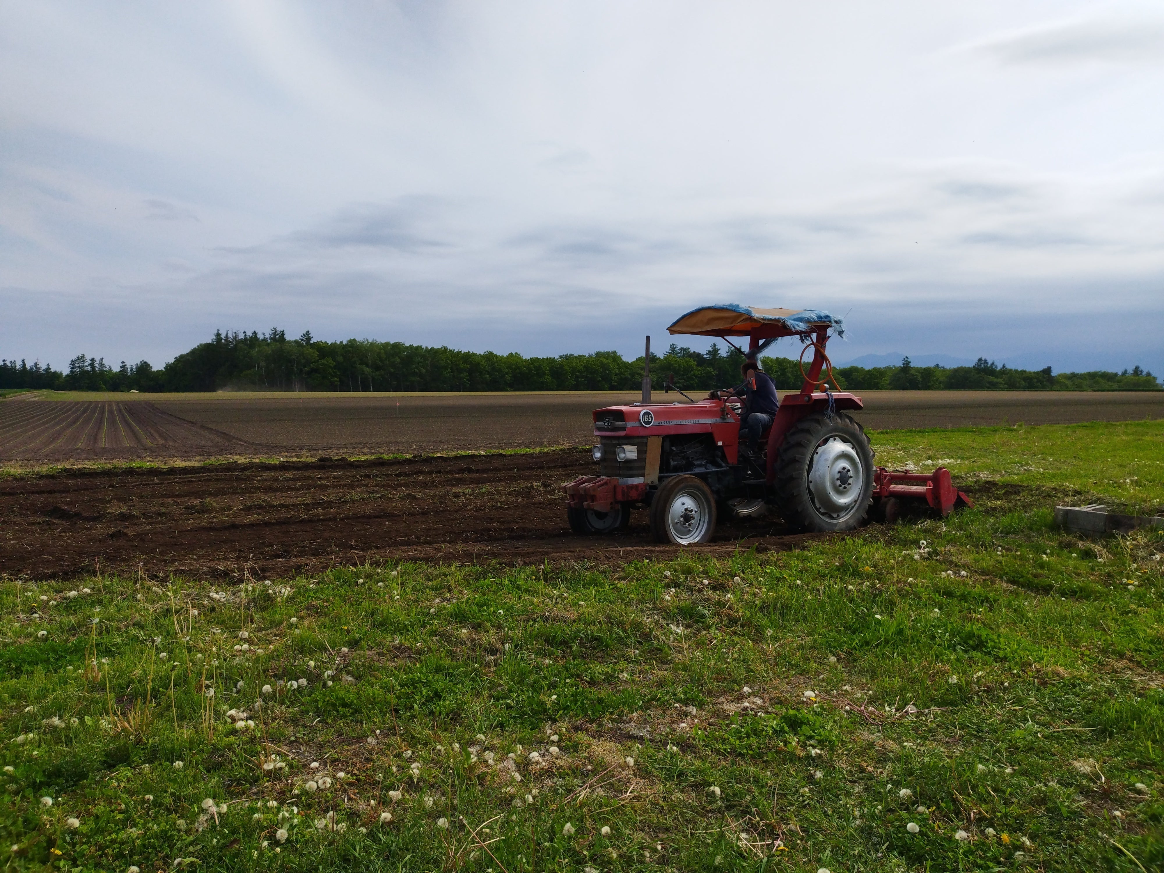 トラクターを見るのは初めて。土に触れるのも久しぶり。