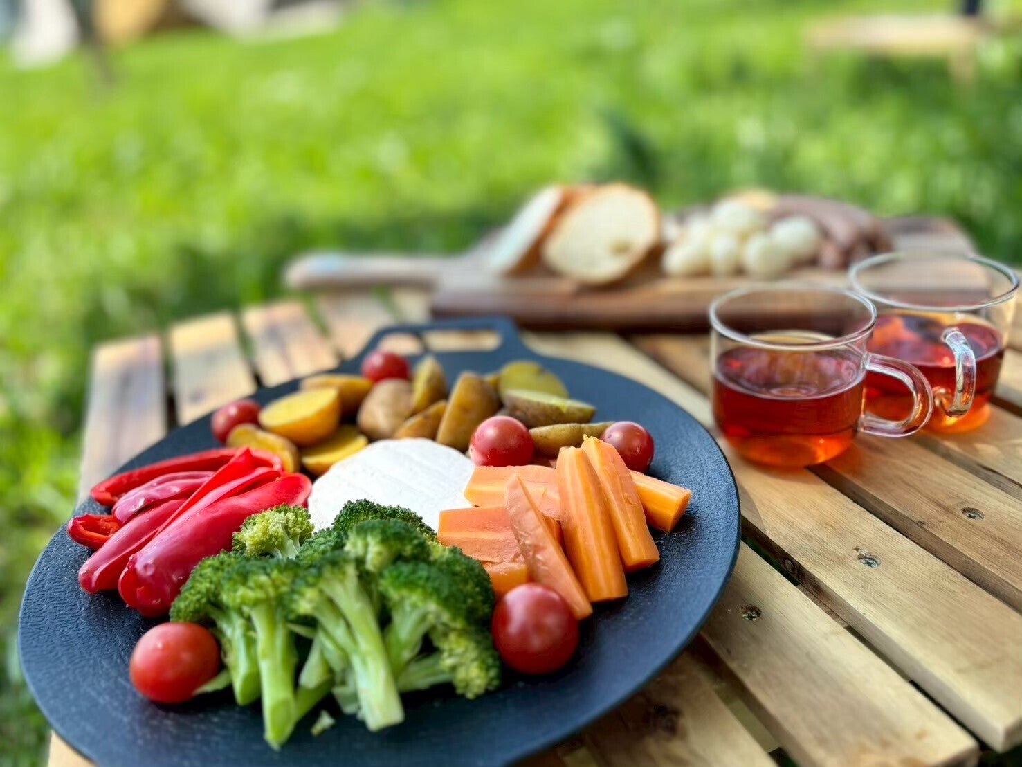 チーズにパン、ソーセージ、野菜はさっき採れたものを〜〜十勝の美味しいものを買い込み、キャンプ場へ。