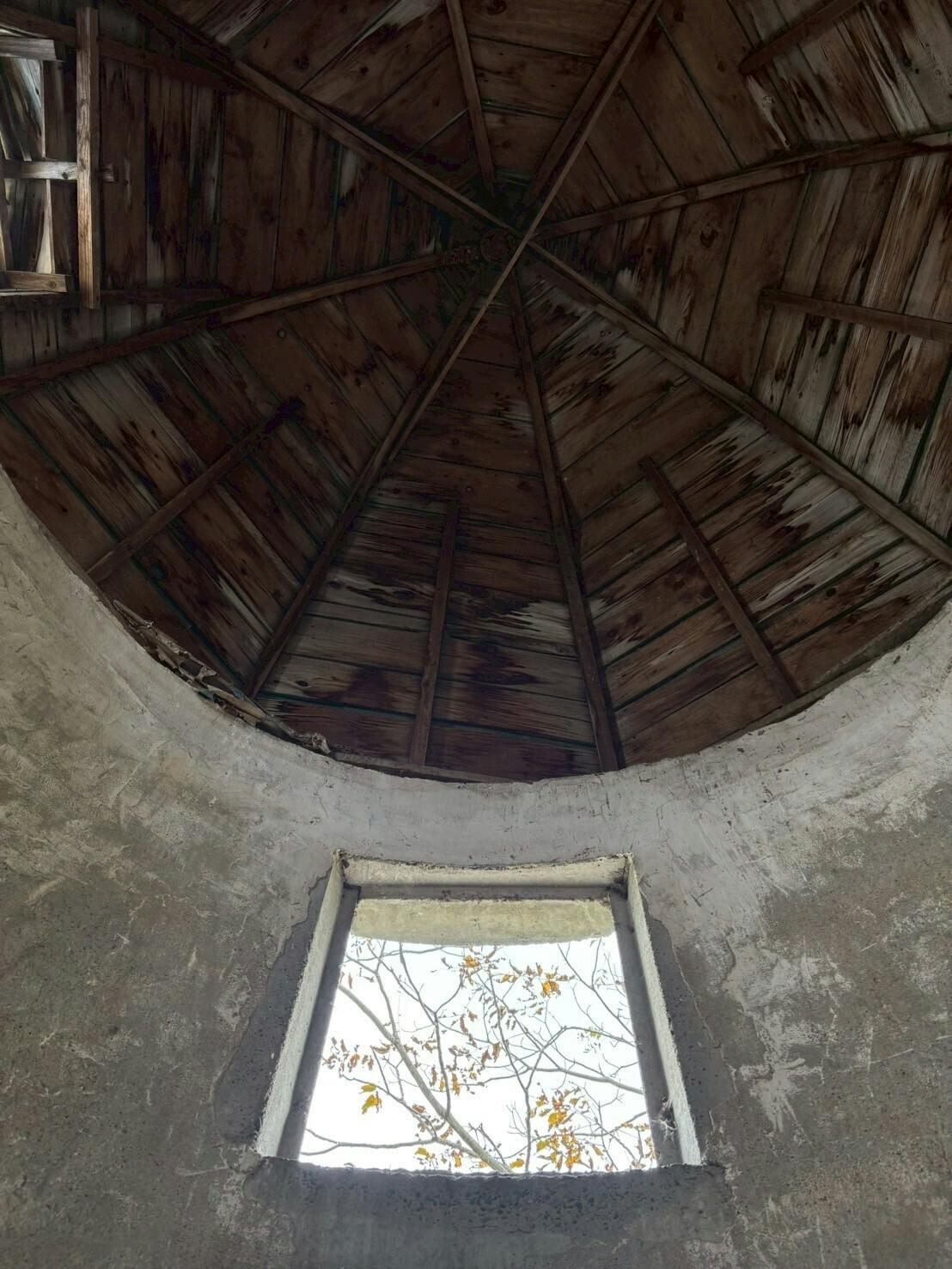 約60年、この場に立ち続けているサイロの風合いが残る屋根部分は天井で塞いで見えなくなるので、この角度の写真はまもなく見納め!
