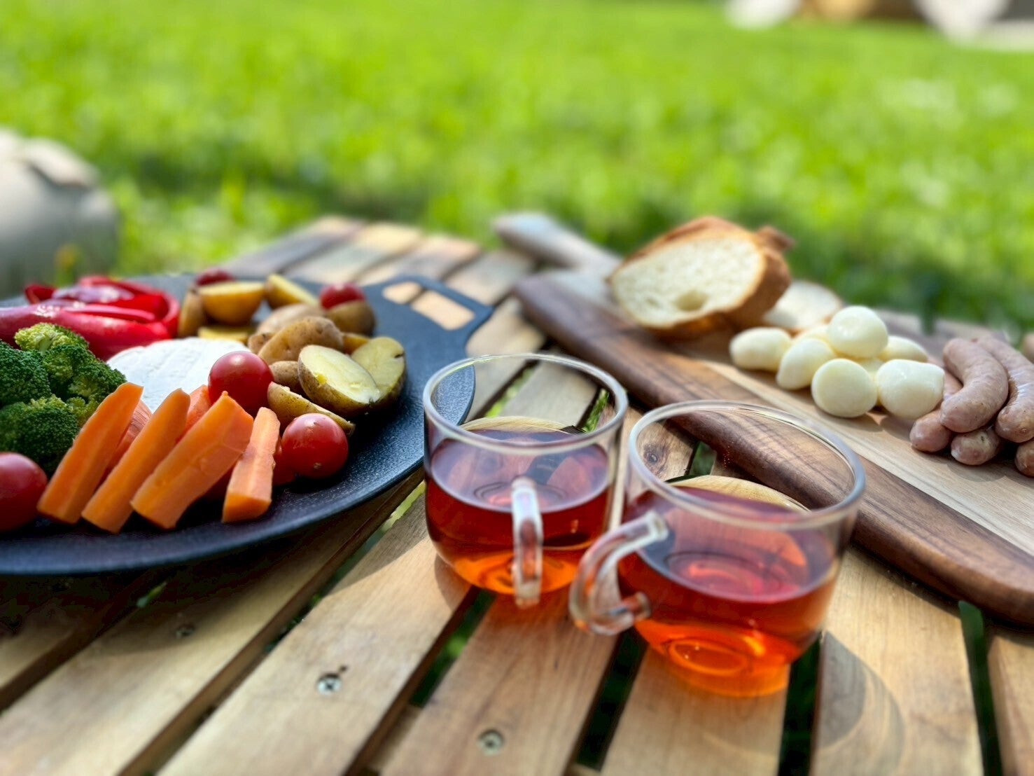畑でとれたあずき茶と野菜でキャンプ&サウナ飯