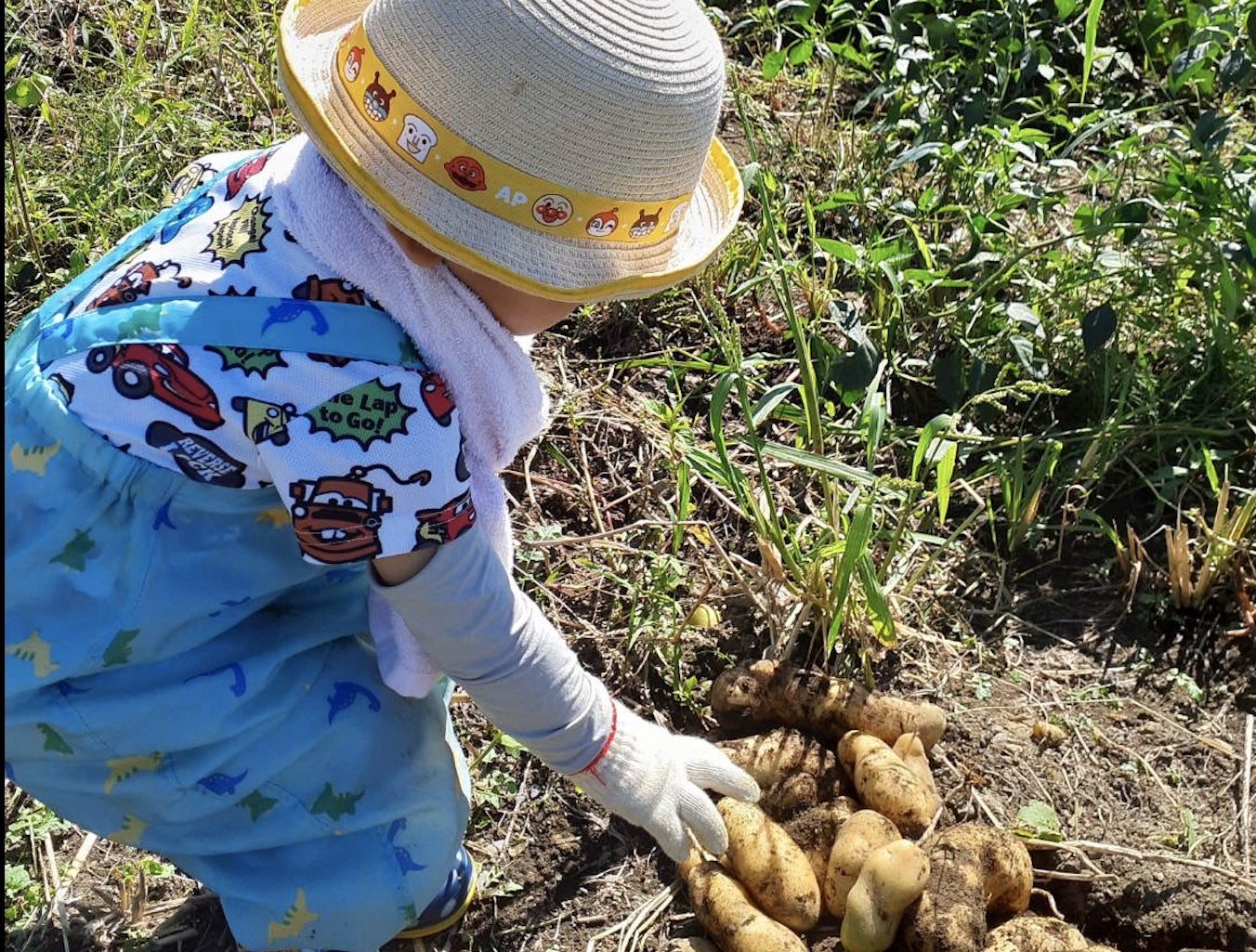 孫たちと一緒に畑作業。宿泊の方も体験できます。(季節限定)