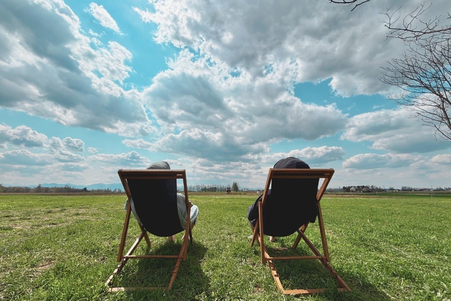 ととのったあとは、広大な畑と空が広がる絶景スポットで外気浴。