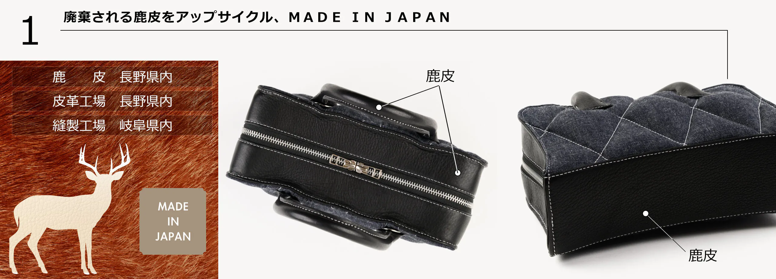 1.<気分がグンと上がる>害獣駆除の鹿皮をアップサイクルした