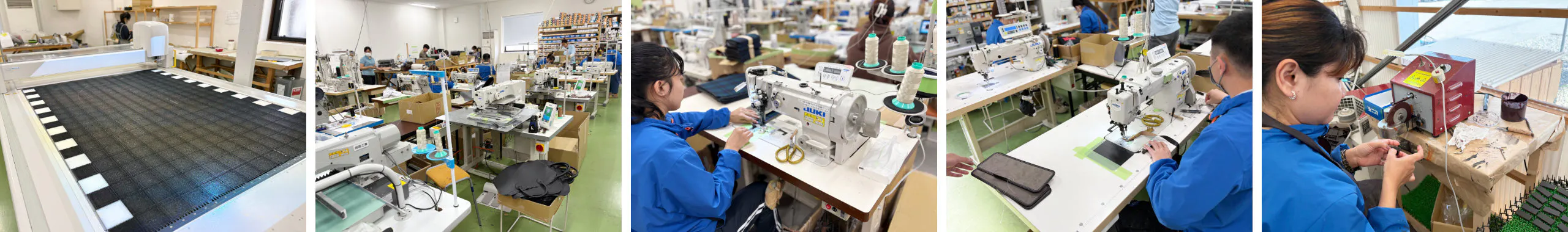 岐阜県内で縫製しています。最新鋭の機器が揃っていますが、機械でできない作業や、小ロットの生産では職人が手で作業します。