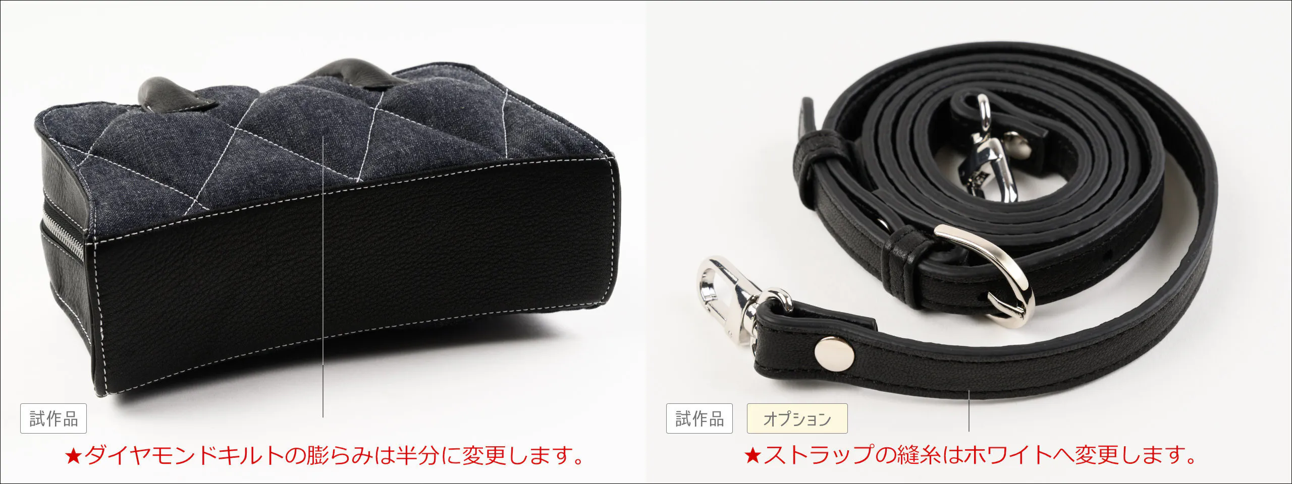 ・ブラック、ネイビーブルー各色1個づつ[計2個]を実物確認のため先行製造:開始予定