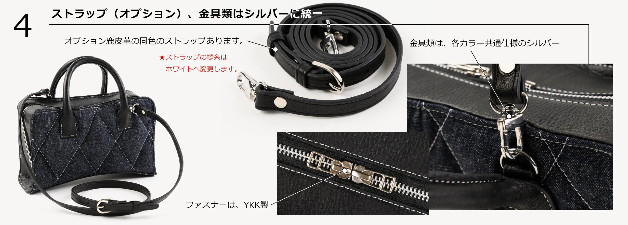 ・ファスナーYKK金属製(シルバー)、Dカン金属製(シルバー)