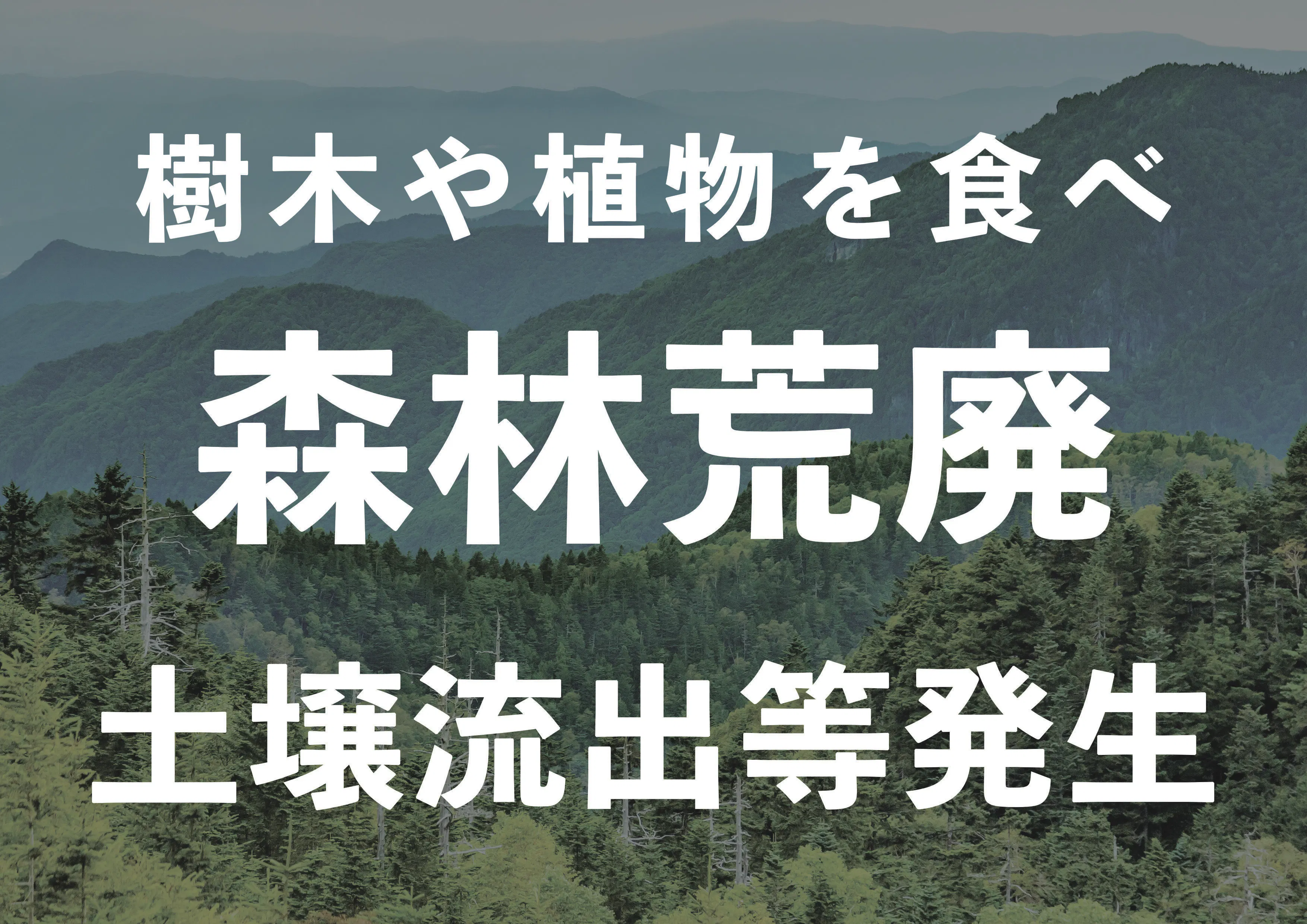 特に、シカの食害により下層植生が衰退し、生物多様性が低下したり、土砂崩れなどの被害が発生するリスクも高まっています。