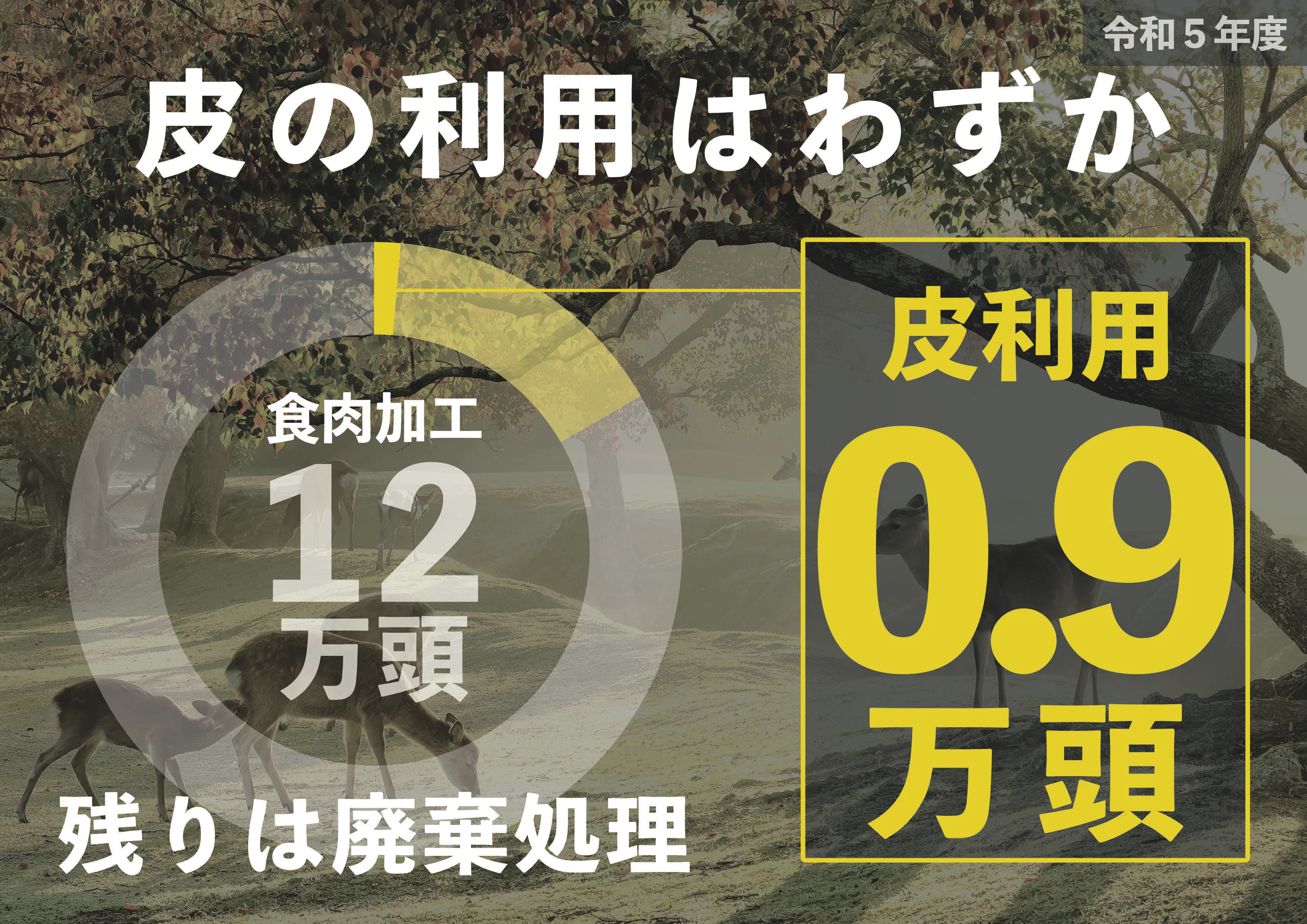 <害獣>として捕獲、専門工場で肉や骨は加工されるが、利用価値の無いと思われいている<皮>はほとんど捨てられているのが現状です。