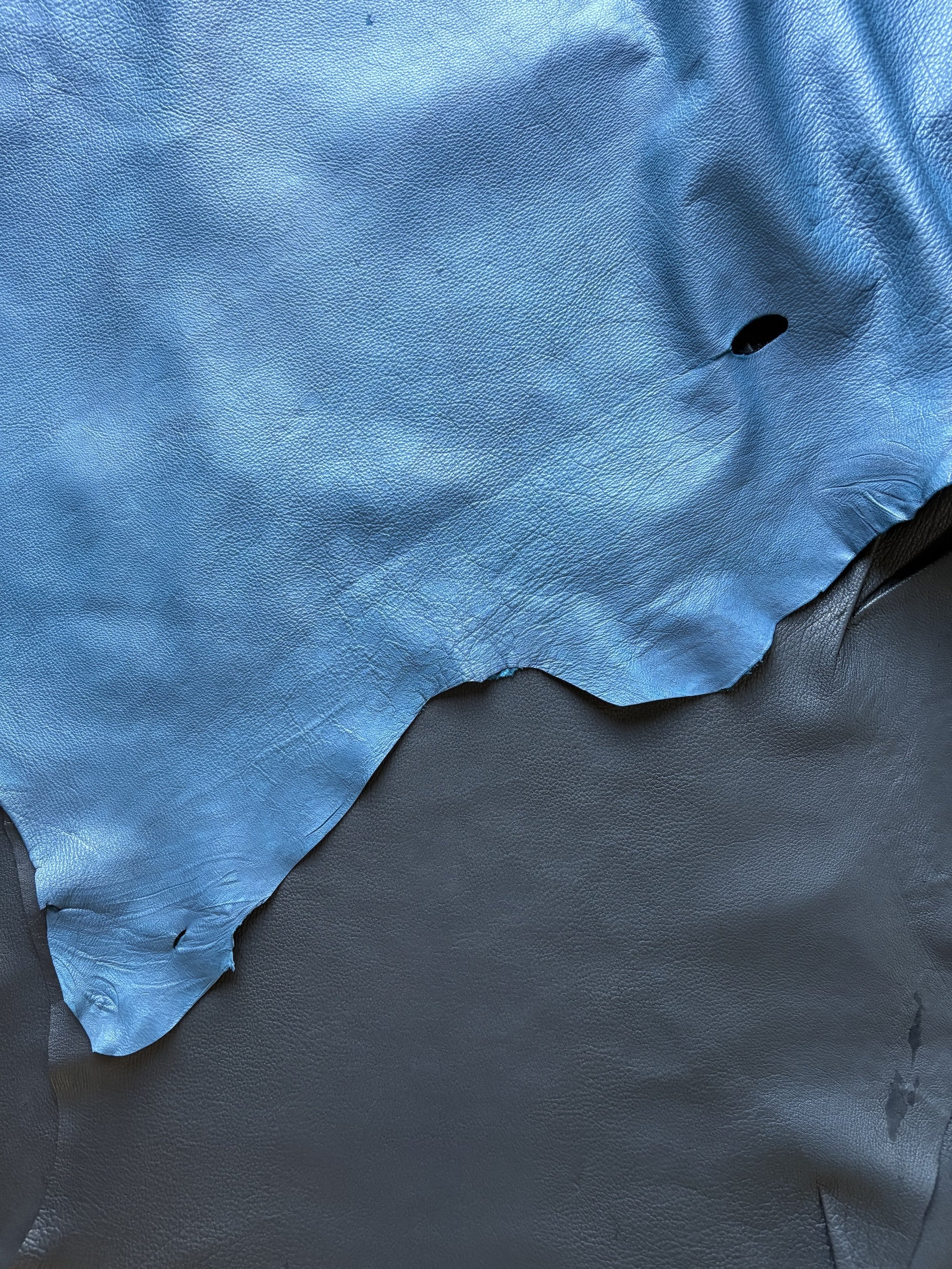 先に届いたネイビーブルー(上)とブラック(下)の鹿皮革(原反)です。