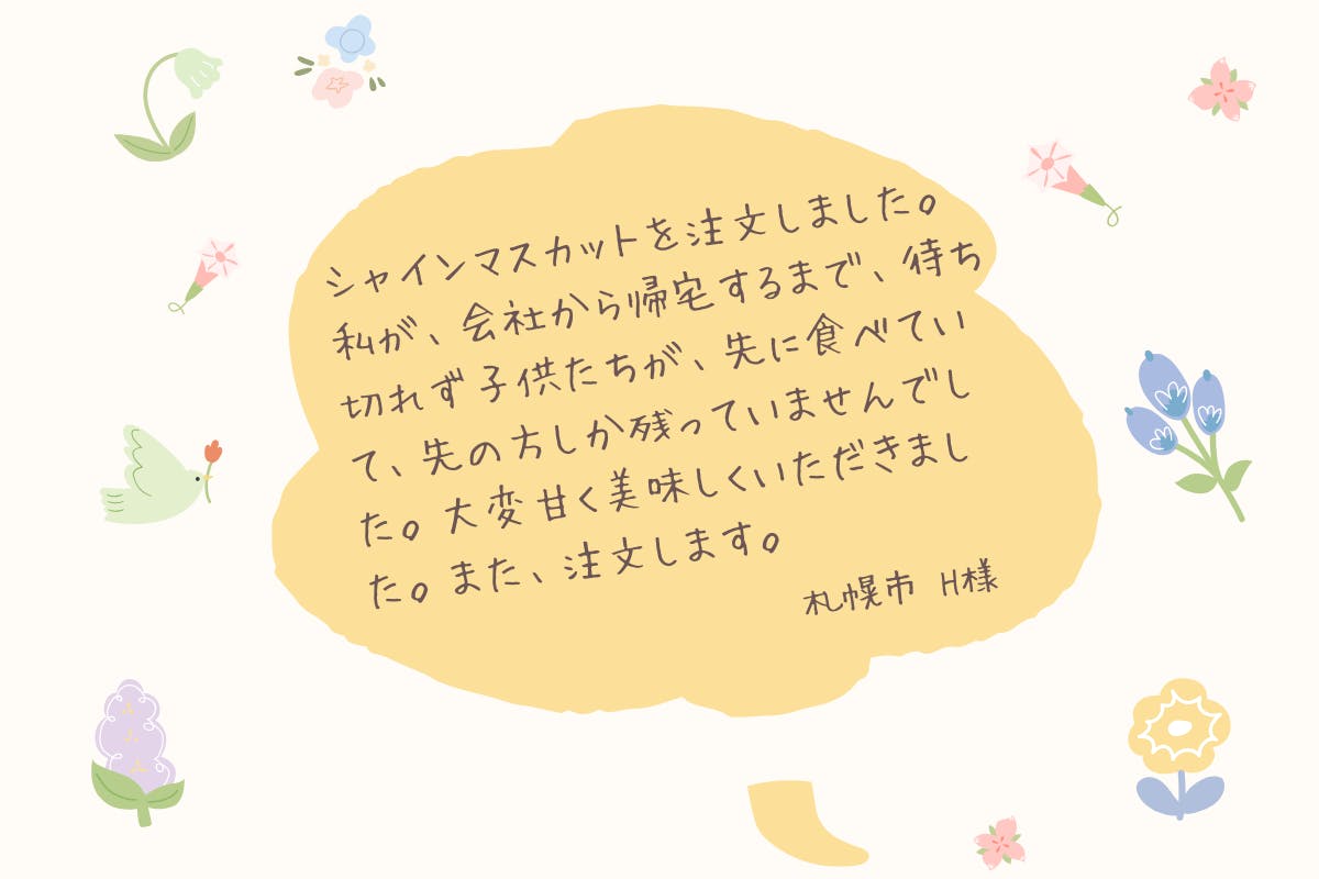 時代が移り変わる中でも、こうして今も多くの方にシャインマスカットや清水白桃をお届けできていることを、心から嬉しく思っています。