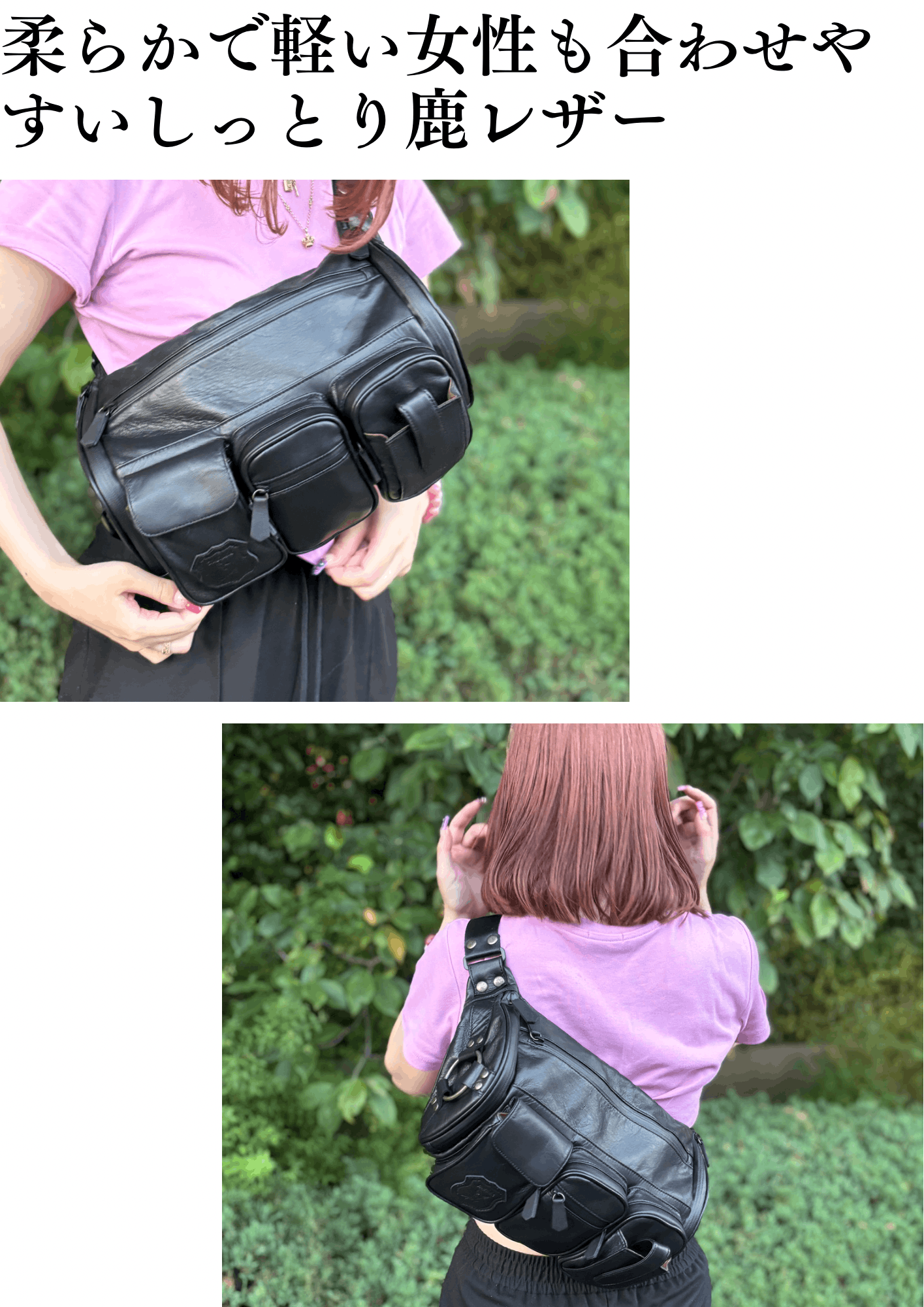 鹿の廃棄を減らすためにも最大限皮を活用して製作しているエシカルなバッグです。環境に配慮したカッコ良い大人のライフスタイルをお過ごし下さい。