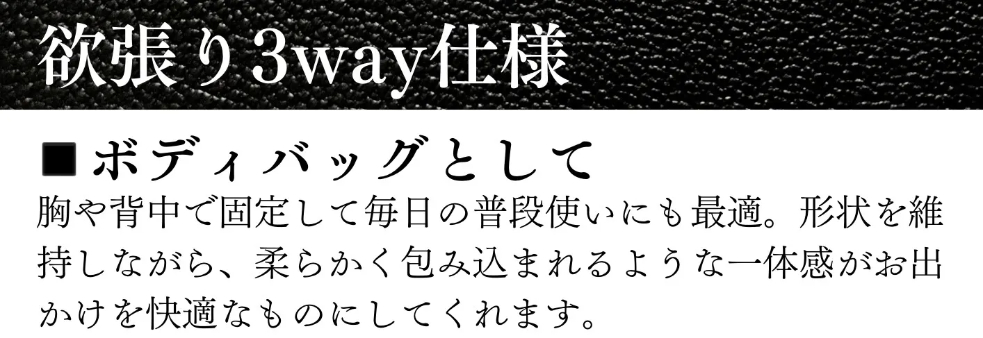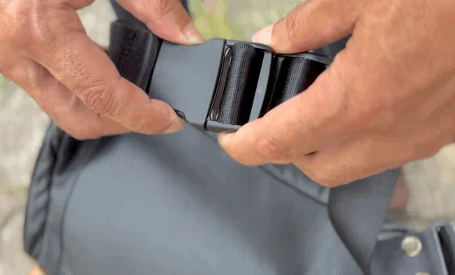 ツーリング中のテンションに耐えられて、水にも強いシートベルトと同じ素材をベルト部分に採用しました。