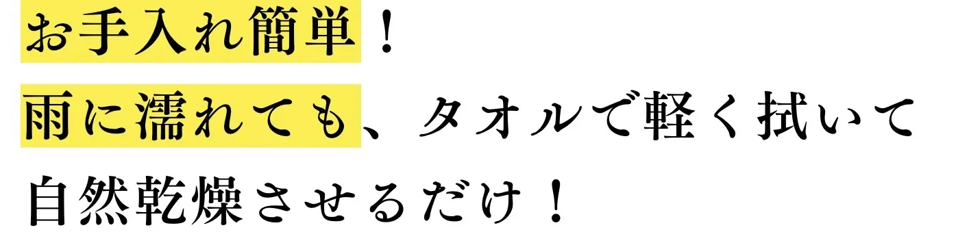 雨に降られても、軽く水分を拭き取って自然乾燥した後、手で揉むと元の形状や質感を取り戻します。