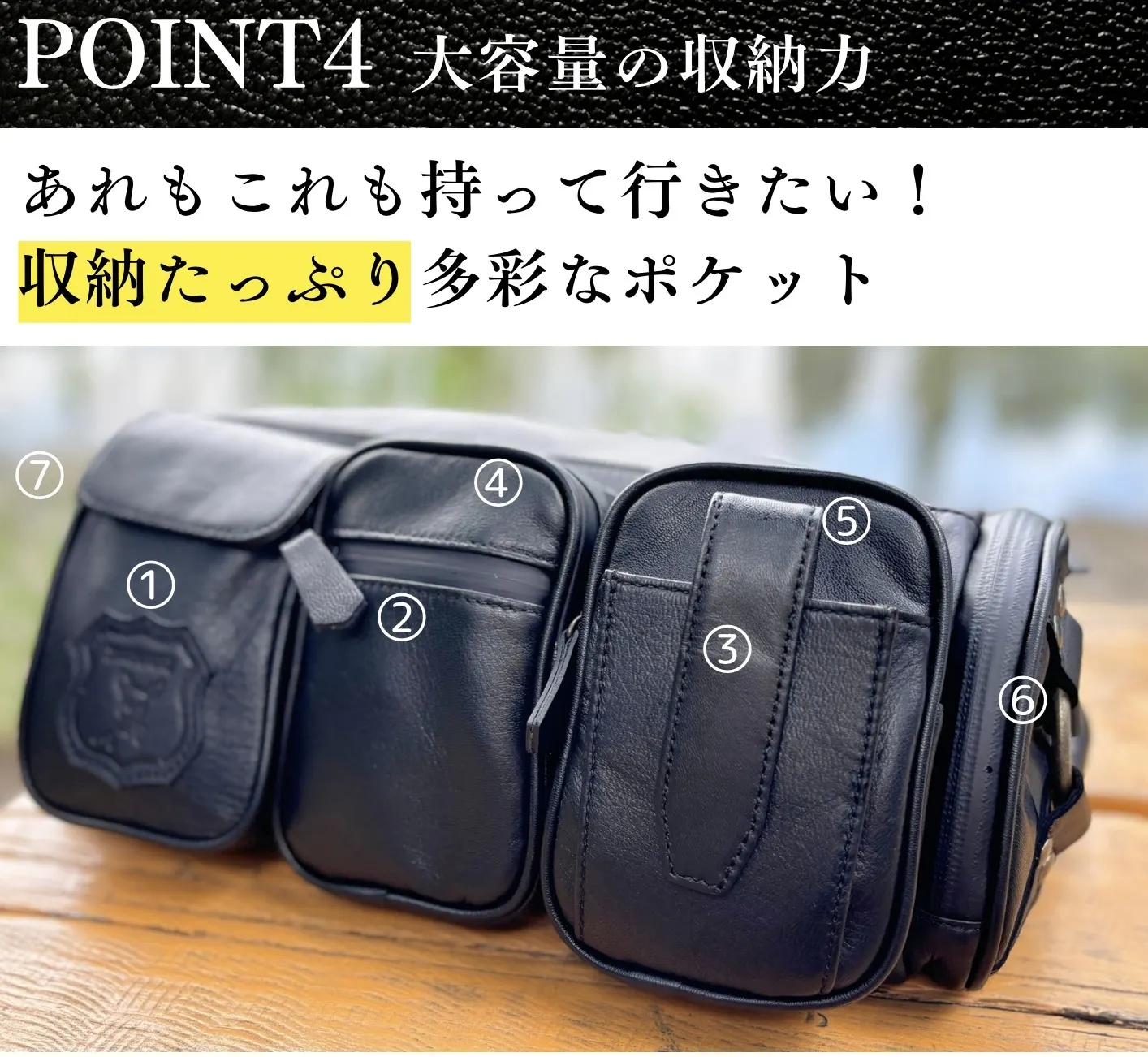 外ポケットは正面に5箇所