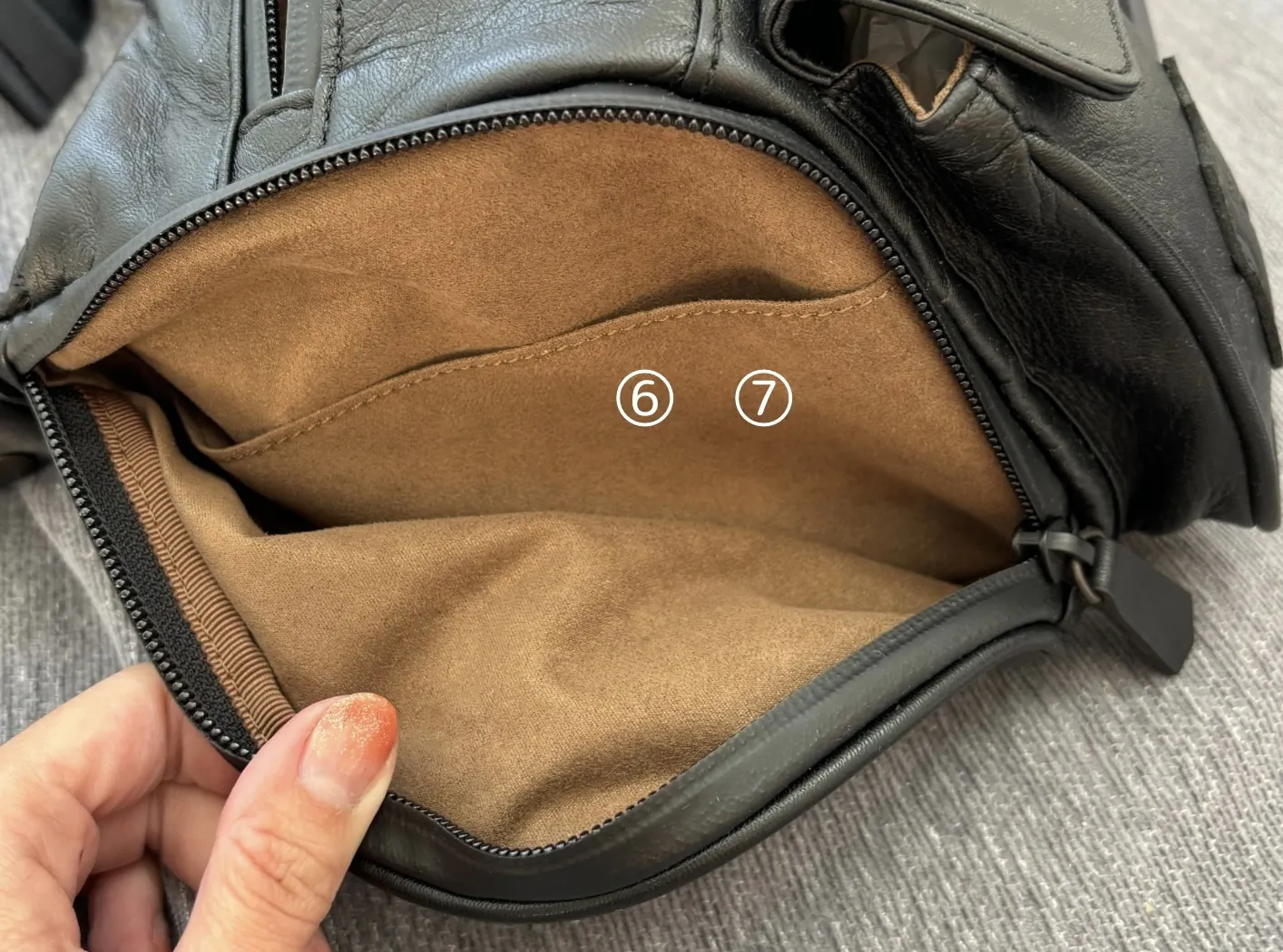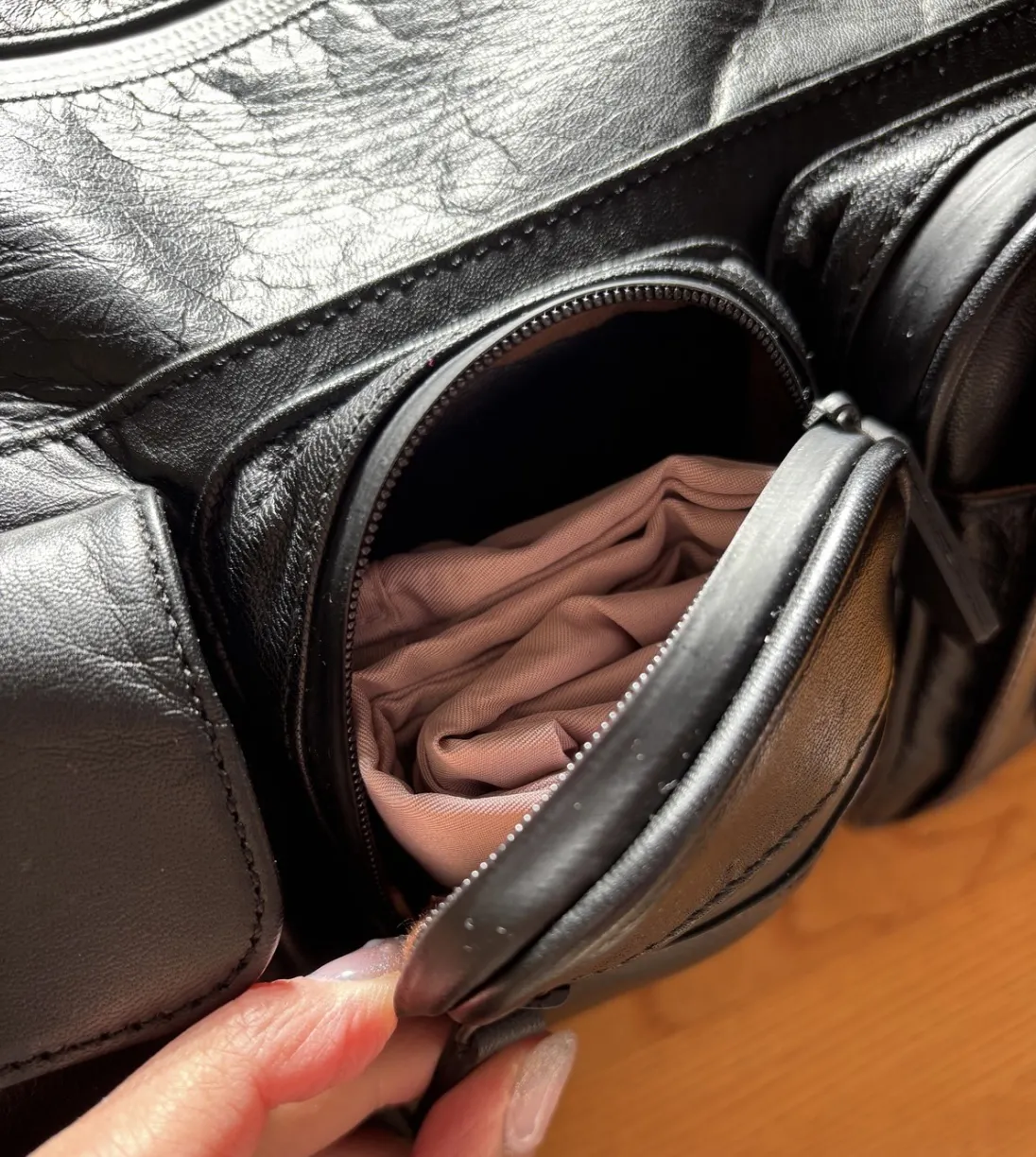 両側面のチャック付きのポケット中には、ポケットがさらにひとつあります。