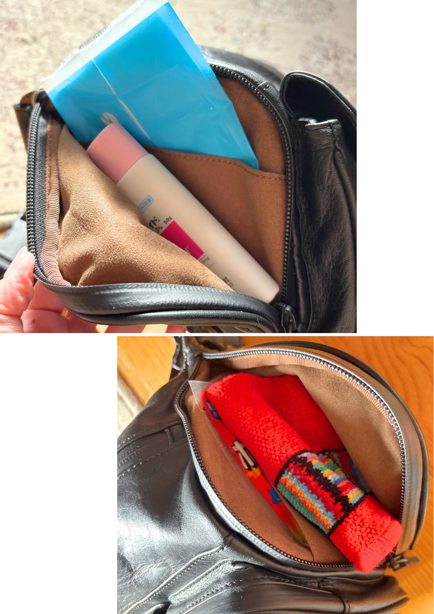 貴重品や細かいものはチャック付きのポケットの中へ。