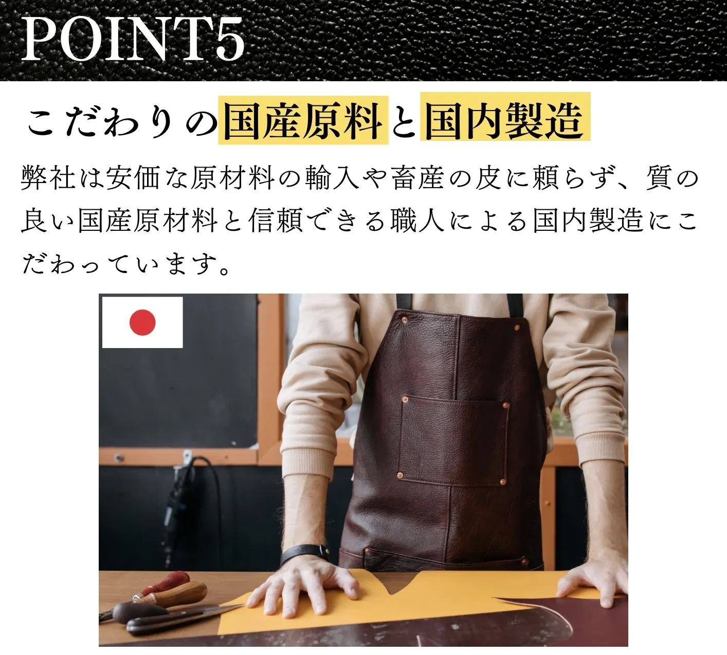 鹿皮を有効利用し、頂いた命を無駄にしたくない。」という強い想いから、全ての工程を商社や問屋を通さず自社で直接管理することにより、価格を最大限抑えて提供することを実現しました。