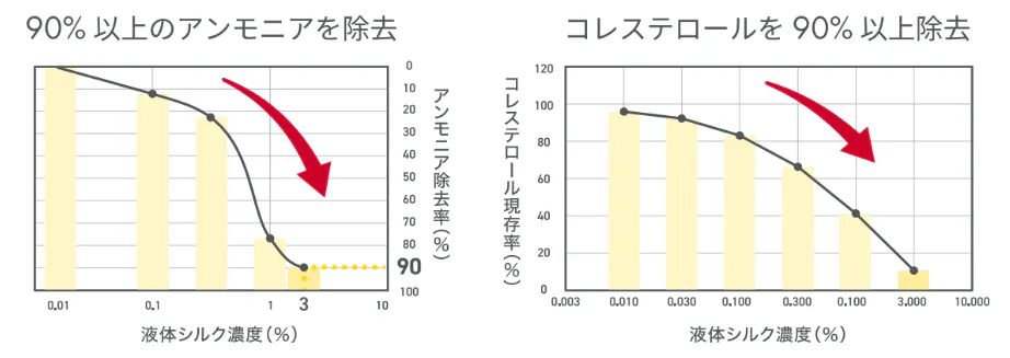 ・シルク由来タンパク質がアンモニアを吸着。腎臓負担を軽減!