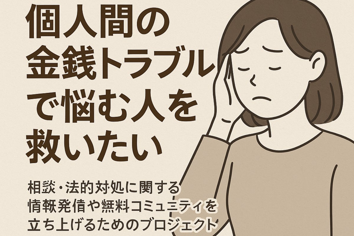 私は以前、信頼していた元恋人との間で金銭トラブルに巻き込まれ、心身ともに大きなダメージを受けました。しかし、その経験を無駄にせず、今困っている人たちに何かできないかと考え、このプロジェクトを立ち上げました。