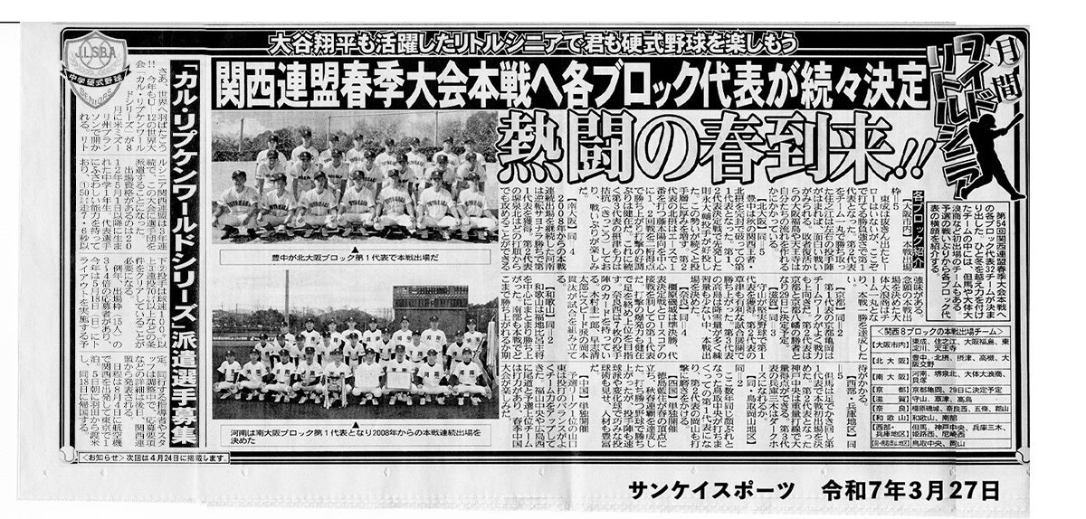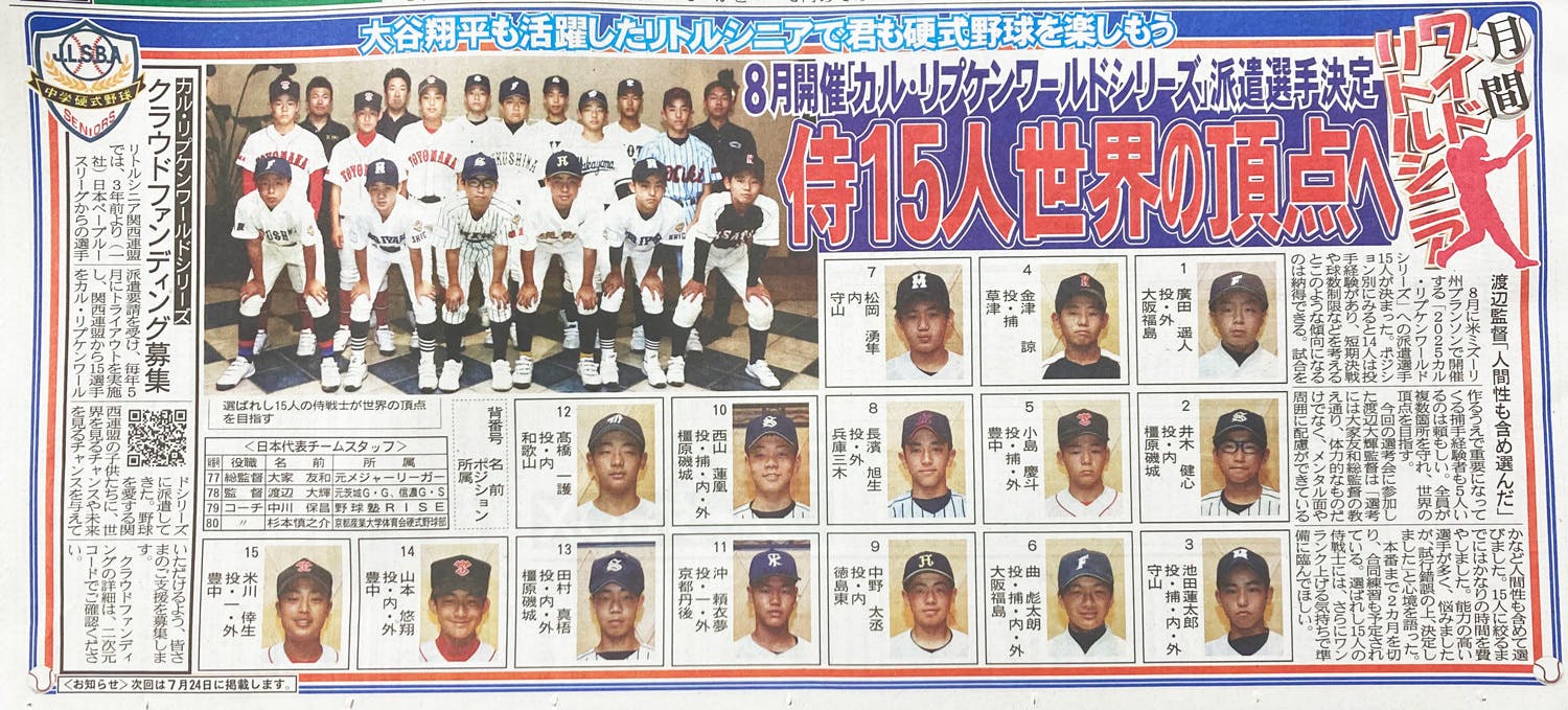 5月下旬 カル・リプケンワールドシリーズ2025 代表選手決定