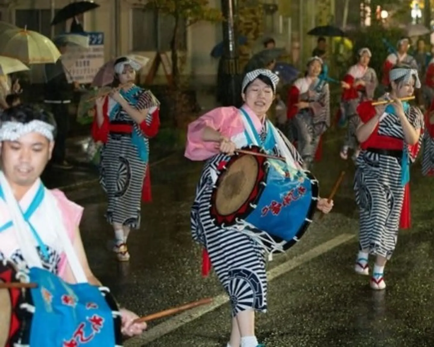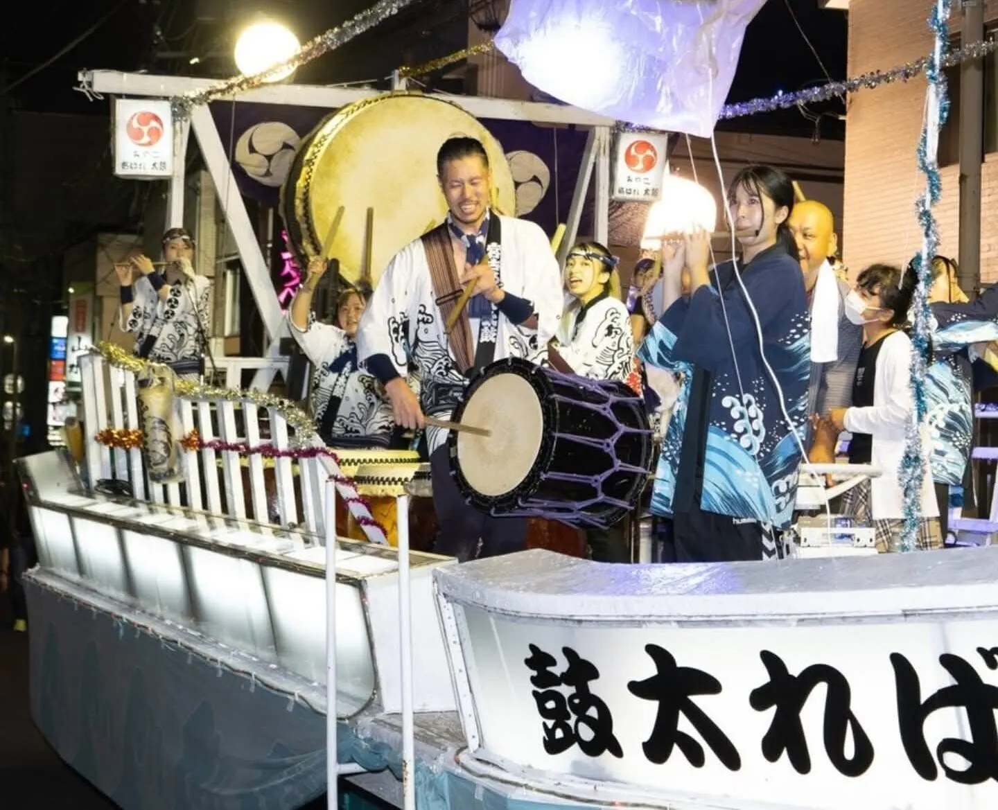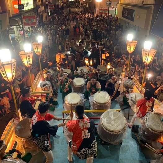 夜のパレード、にぎやかな太鼓や踊りがあります。