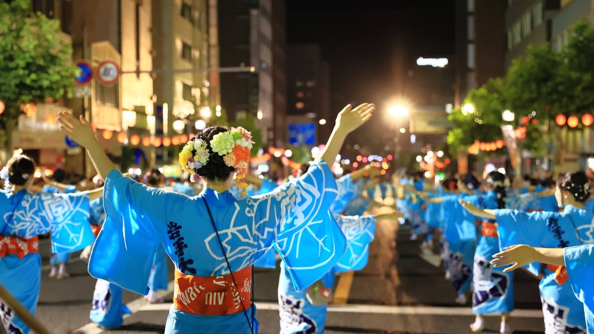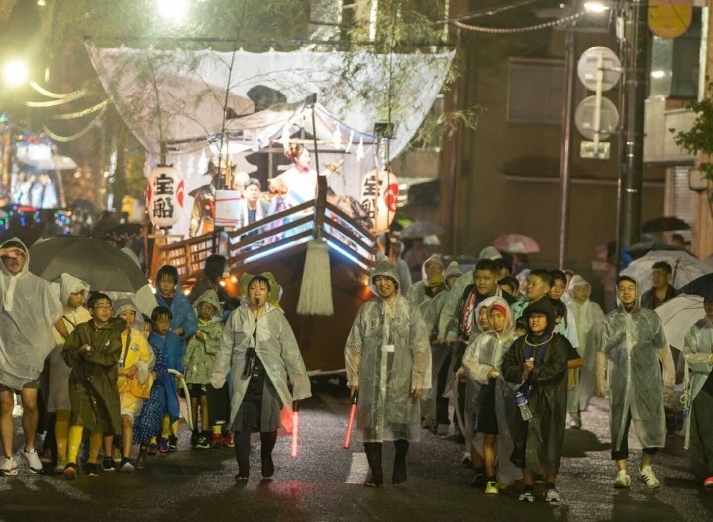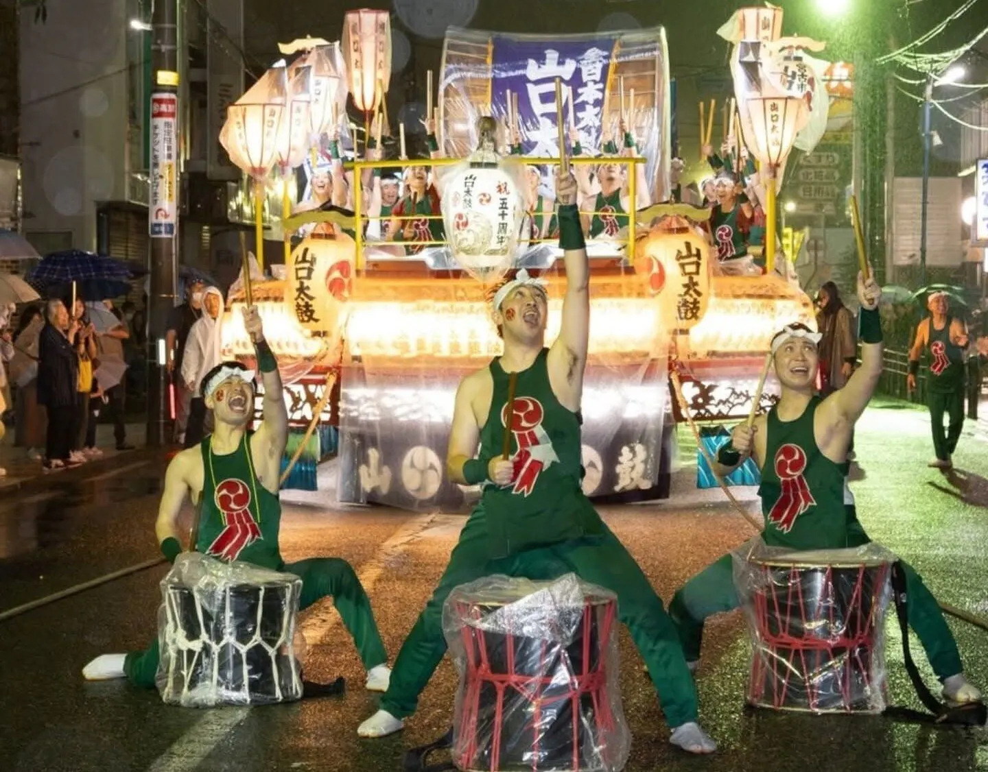 夜のパレード、にぎやかな太鼓や踊りがあります。