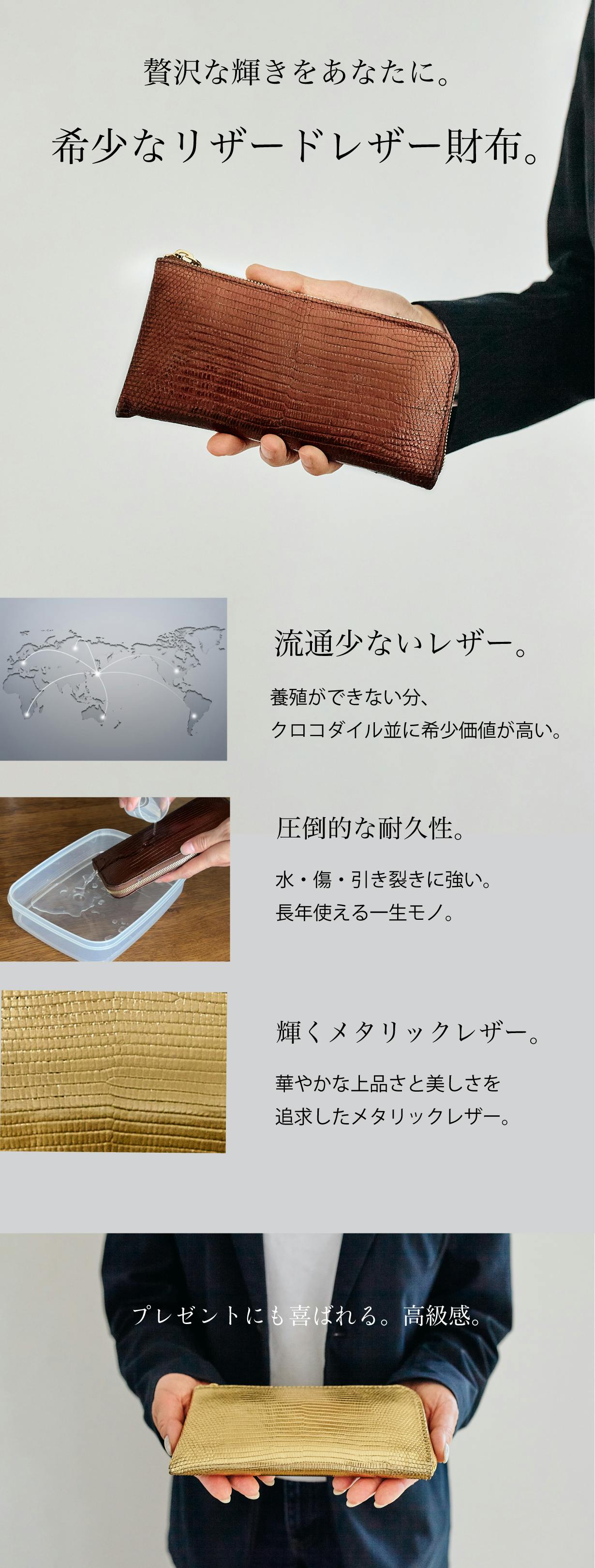 レザーといえば重いイメージを持つ方もいると思いますが、リザードレザーは予想より軽いです。だから、持ち運びが楽なのも嬉しいポイントです。