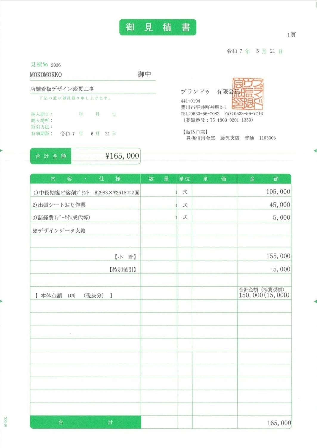 看板の見積もりを何店舗かだしたところ、こちらが一番安かったんですが…(仕事も早かった!)